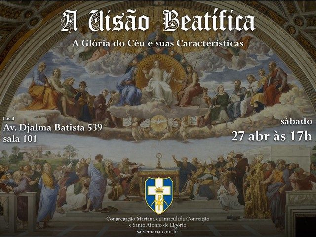 - Manaus/AM salvemaria.com.br VER A DEUS A Visão Beatífica é a iluminação da inteligência por Deus para permitir à alma conhecê-lo tal qual ele é por uma clara, direta e imediata percepção (intuição) de sua Divina Essência e a tomada da alma para o seu Seio, fazendo-a participar de sua alegria e glória Constituindo uma união tão íntima e gloriosa que o justo, sem perder sua natureza ou identidade, torna-se participante de sua natureza divina