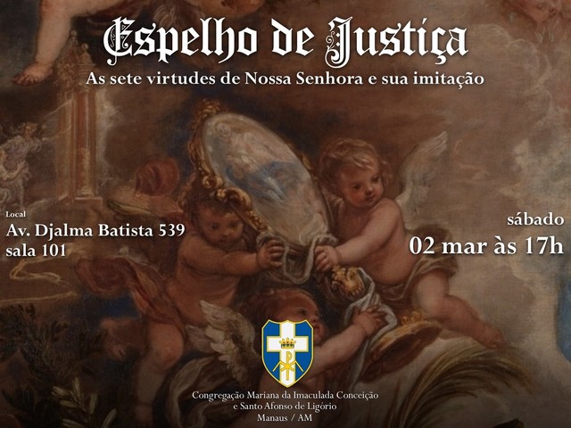 - Manaus/AM salvemaria.com.br ESPELHO DE JUSTIÇA Imitar e amar N. Senhora é imitar Nosso Senhor Imitar Nossa Senhora é garantia de conseguir dela maiores favores Imitar Nossa Senhora é certeza de atrair para nossa alma a luz do Espírito Santo A vida de Nossa Senhora é escola de todas as virtudes (S. Ambrósio) Somente são verdadeiro filhos de Maria aqueles que buscam copiar-lhe em tua a vida (Ricardo de S. Lourenço)