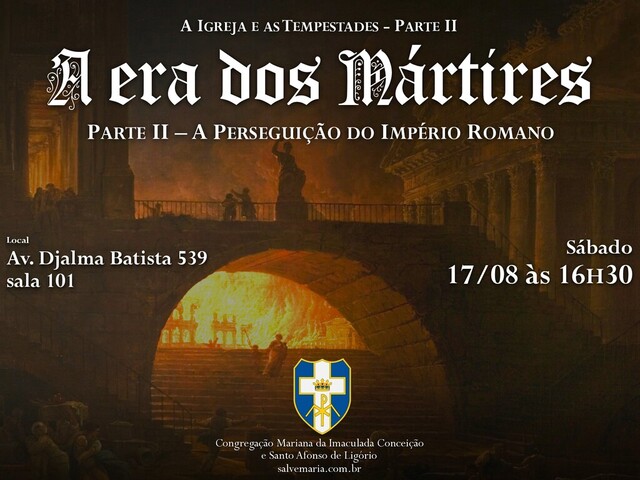 dos Mártires A IGREJA E AS TEMPESTADES - PARTE II Congregação Mariana da Imaculada Conceição e Santo Afonso de Ligório salvemaria.com.br Local Av. Djalma Batista 539 sala 101 Sábado 17/08 às 16H30