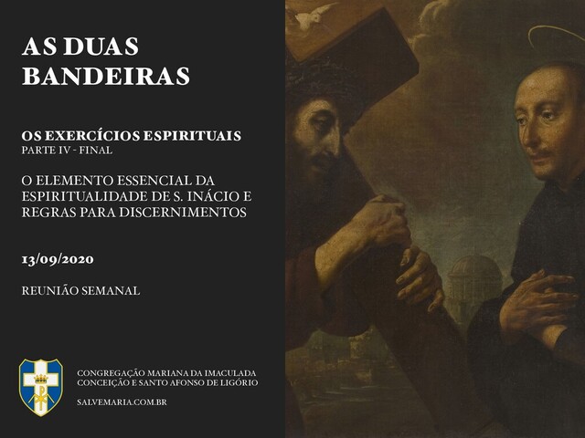 Veremos como o trabalho pela conversão dos povos, o esforço pela educação cristã, o apostolado com tantos santos e mártires, a ardente vida interior, enfim, todo fruto da obra de Santo Inácio - a congregação mariana, em particular - bebe desse princípio: Fazer o mais e o melhor por Cristo, para sua maior glória,e como podemos nós também, nutrindo-nos com essa espiritualidade tão cara a nós, seguir o Rei Crucificado como Ele quis ser seguido.
