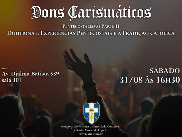 salvemaria.com.br Local Av. Djalma Batista 539 sala 101 PENTECOSTALISMO PARTE II DOUTRINA E EXPERIÊNCIAS PENTECOSTAIS E A TRADIÇÃO CATÓLICA Dons Carismáticos SÁBADO 31/08 ÀS 16H30