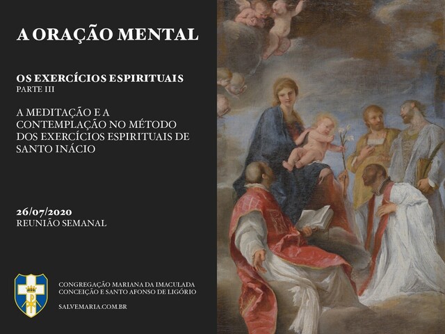 E A CONTEMPLAÇÃO NO MÉTODO DOS EXERCÍCIOS ESPIRITUAIS DE SANTO INÁCIO 26/07/2020 REUNIÃO SEMANAL CONGREGAÇÃO MARIANA DA IMACULADA CONCEIÇÃO E SANTO AFONSO DE LIGÓRIO SALVEMARIA.COM.BR