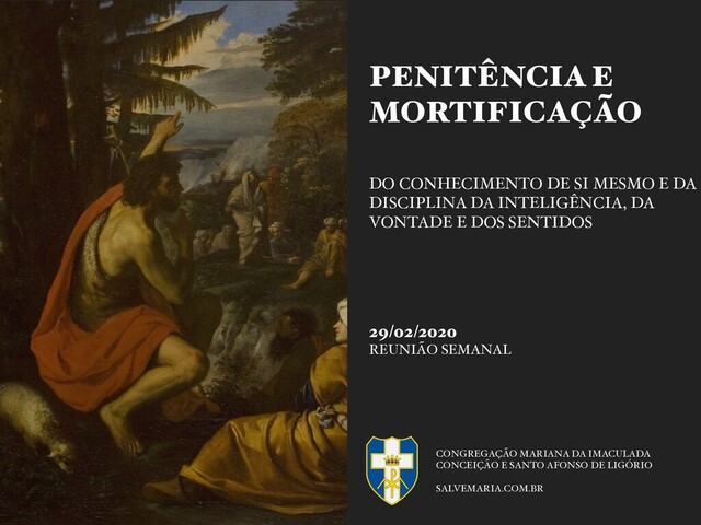 DISCIPLINA DA INTELIGÊNCIA, DA VONTADE E DOS SENTIDOS 07/03/2020 REUNIÃO SEMANAL — CONTINUAÇÃO CONGREGAÇÃO MARIANA DA IMACULADA CONCEIÇÃO E SANTO AFONSO DE LIGÓRIO SALVEMARIA.COM.BR