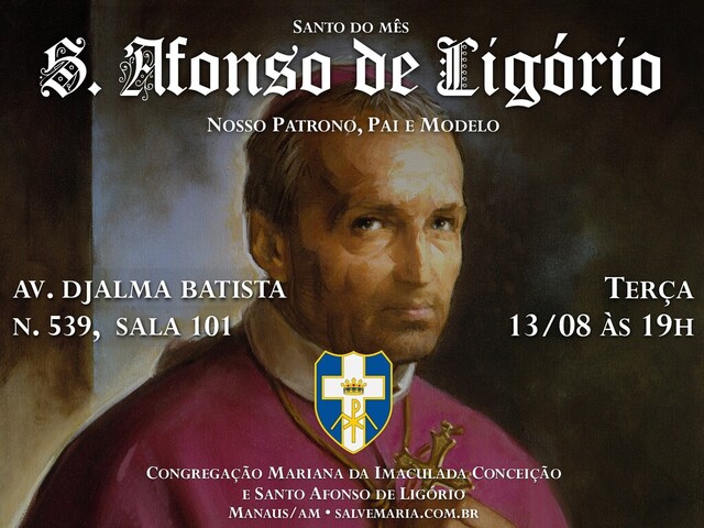 CONGREGAÇÃO MARIANA DA IMACULADA CONCEIÇÃO E SANTO AFONSO DE LIGÓRIO MANAUS/AM • SALVEMARIA.COM.BR AV. DJALMA BATISTA N. 539, SALA 101 TERÇA 13/08 ÀS 19H SANTO DO MÊS