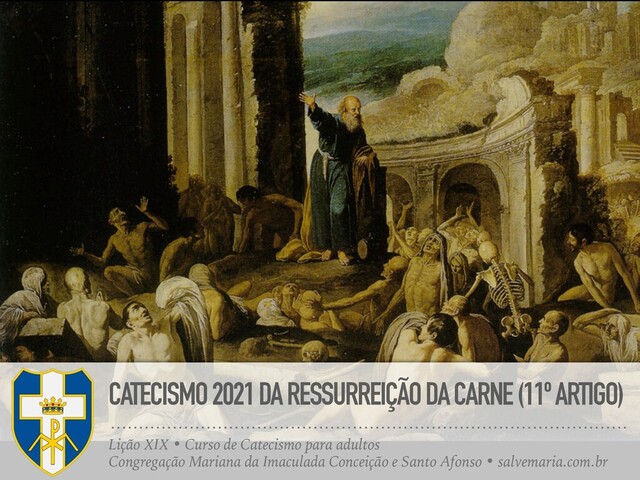 Credo: a ressurreição da carne? O décimo primeiro artigo do Credo ensina-nos que todos os homens ressuscitarão, retomando toda alma o corpo que teve nesta vida. 241) Como será a ressurreição dos mortos? A ressurreição dos mortos realizar-se-á por virtude de Deus Onipotente, a Quem nada é impossível. 242) Quando ocorrerá a ressurreição dos mortos? A ressurreição de todos os mortos ocorrerá no fim do mundo e, em seguida, o Juízo universal. 243) Por que Deus quer a ressurreição do corpo? Deus quer a ressurreição do corpo para que a nossa alma, tendo feito o bem ou o mal unida ao corpo, juntamente com ele seja recompensada ou punida. Catecismo de São Pio X