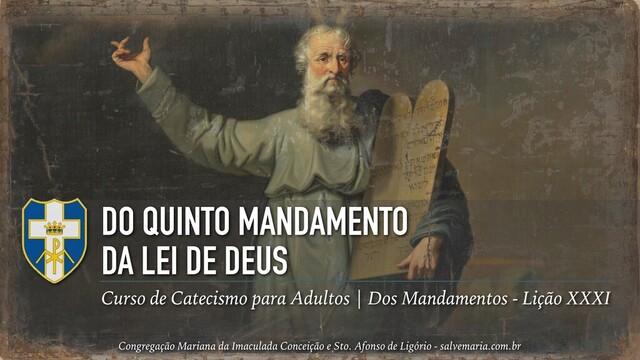 está teu irmão Abel? E ele respondeu: não sei. Porventura sou eu o guarda de meu irmão? E o Senhor disse-lhe: Que fizeste? A voz do sangue de teu irmão ergue o seu clamor da terra até mim. Congregação Mariana da Imaculada Conceição e Sto. Afonso de Ligório - salvemaria.com.br Curso de Catecismo para Adultos | Dos Mandamentos - Lição XXXI - Do Quinto Mandamento
