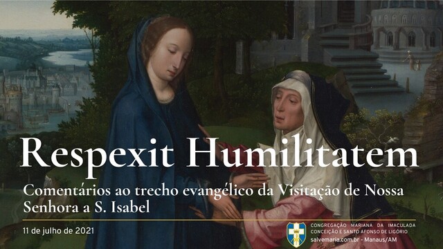 “Benedicta tu inter mulieres et benedictus fructus ventris tui" (Lc 1, 32) - "Bendita és tu entre as mulheres e bendito é o fruto do teu ventre". S. Isabel, ao ouvir a saudação de Maria, com estas palavras, reconheceu a glória de Deus presente naquela humilde jovem, prometida a um carpinteiro e moradora de uma simples casa em Nazaré. Nossa Senhora sendo o canal da graça de Deus levou até a casa de S. Zacarias não só a sua humilde caridade, mas encheu aquelas almas do Espírito Santo, livrando S. João do pecado original e preparando-o para sua missão de precursor de Cristo. Por tudo isto e por muitas outras graças, declarou: "quia fecit mihi magna qui potens est et sanctum nomen ejus" (Lc 1, 49) - “realizou em mim maravilhas aquele que é poderoso e cujo nome é Santo”.