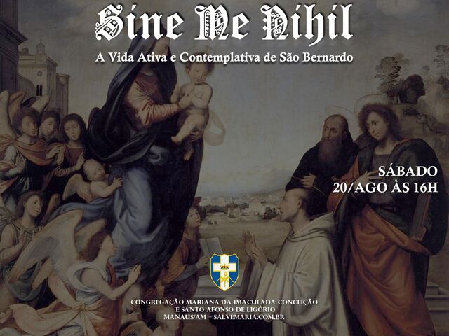"Sine me nihil potestis facere - Sem mim nada podeis fazer (Jo 15, 5), relembra D. Chautard que é pela vida interior, a vida da alma unida a Deus, que as obras podem florescer segundo a vontade divina. Há ainda uma precedência da vida interior sobre a vida ativa e observando um santo da estatura de São Bernardo, de obras tão prolíficas, subentende-se uma vida contemplativa de maior estatura. Na aula deste sábado a partir das 16h estudaremos sobre a vida ativa e a vida contemplativa, observando o exemplo de São Bernardo, abade cisterciense, confessor e doutor da Igreja. Todos são convidados.