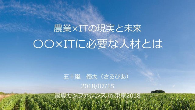 農業×ITの現実と未来 〇〇×ITに必要な人材とは 五十嵐 優太(さるびあ) 2018/07/15 高専カンファレンス in 東京2018