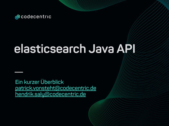 REST API •Alle Operationen können auch asynchron ausgeführt werden •Verbindung zu elasticsearch erfolgt über dieselbe Schnittstelle, über die auch die einzelnen elasticsearch Nodes kommunizieren (Transport Protocol) •Fluent API auf Basis verschiedener Builder-Klassen •Loadbalancing und Failover funktioniert automatisch elasticsearch Java API 2
