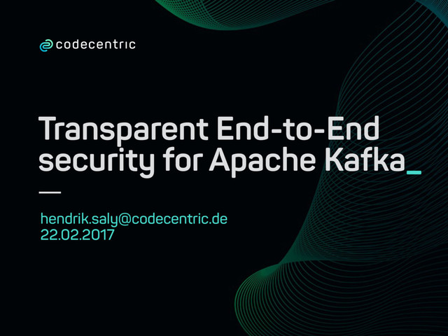 from reading the message for anyone without the key • It does also protect from altering messages • So no worries about insecure backup places • No worries about disk/hardware thefts • SSL/TLS can (under certain conditions ) be omitted • leverage sendfile • skip complex setup Transparent End-to-End security for Apache Kafka_ 3