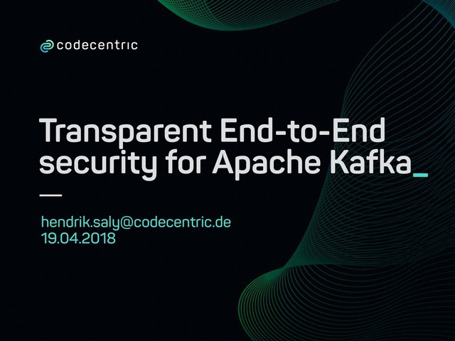 from reading the message for anyone without the key(s) • It does also protect from altering messages • So no worries about insecure backup places • No worries about disk/hardware thefts or the „evil cloud“ • Broker never sees unencrypted data • Might help to be (GDPR) compliant • SSL/TLS can (under certain conditions) be omitted • leverage sendfile (for linux kernel < 4.1.3) • skip complex and potential dangerous setup • Java SSL (in GCM mode) is slow Transparent End-to-End security for Apache Kafka_ 3