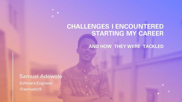 tech Challenges I faced while learning coding How I managed schooling with coding My community engagement and how it has improved me. Interview challenges and how I've been able to improve myself + how I secured my first job How my relationship with people has helped me My go-to resources