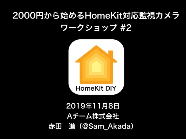 ΞδΣϯμ 19:30-19:35 εϙϯαʔ͔Β࿈བྷࣄ߲ 19:35-19:40 ͜ͷΠϕϯτʹ͍ͭͯ 19:40-19:50 HomeKitͷجૅ 19:50-20:30 HomeKitରԠࢹΧϝϥΛ࡞Δ 20:30-20:45