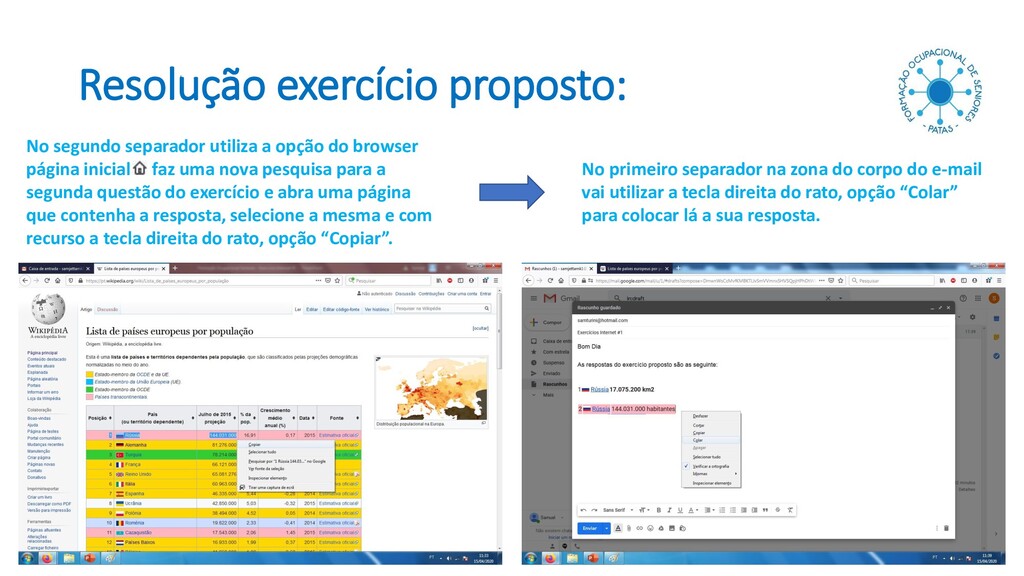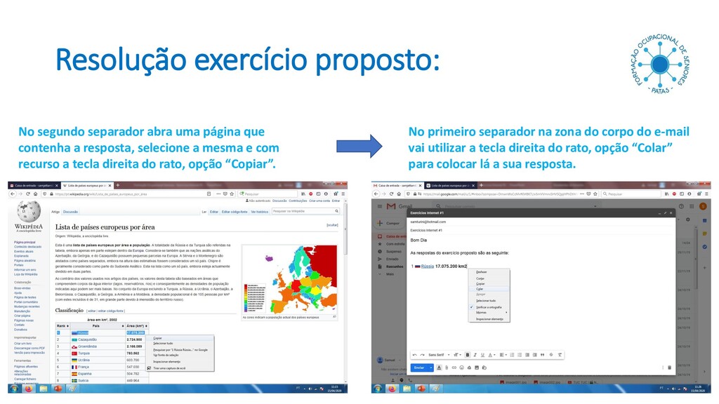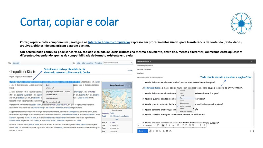 paradigma na Interação homem-computador expresso em procedimentos usados para transferência de conteúdo (texto, dados, arquivos, objetos) de uma origem para um destino. Um determinado conteúdo pode ser cortado, copiado e colado de locais distintos no mesmo documento, entre documentos diferentes, ou mesmo entre aplicações diferentes, dependendo apenas da compatibilidade de formato existente entre elas. Selecionar o texto pretendido, tecla direita do rato e escolher a opção Copiar Tecla direita do rato e escolher a opção Colar