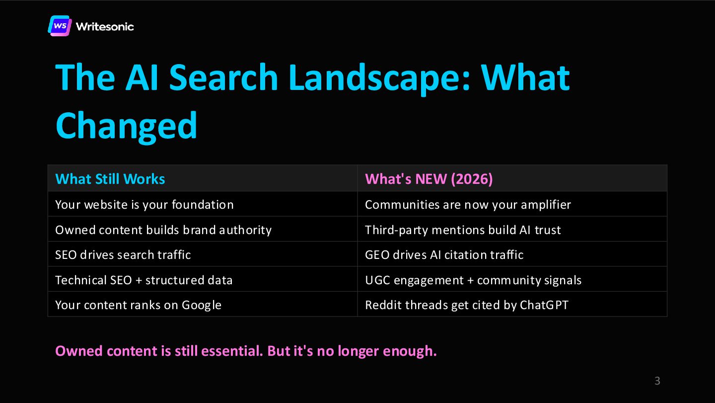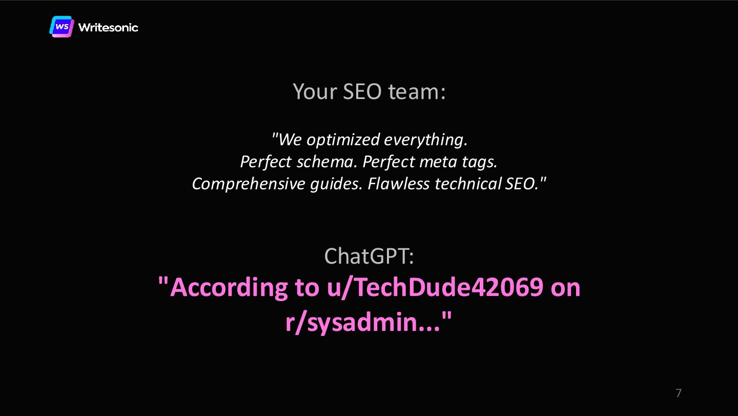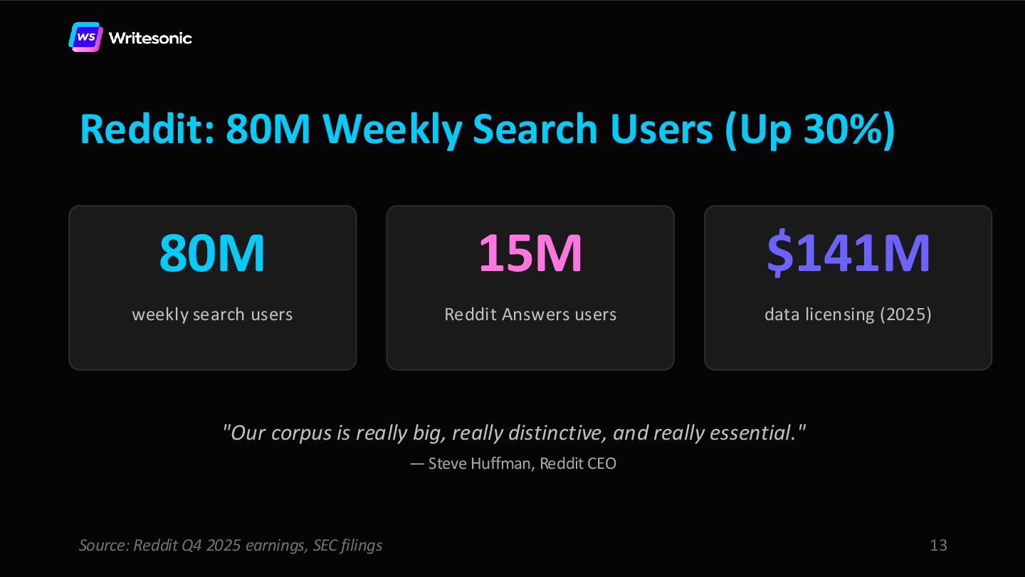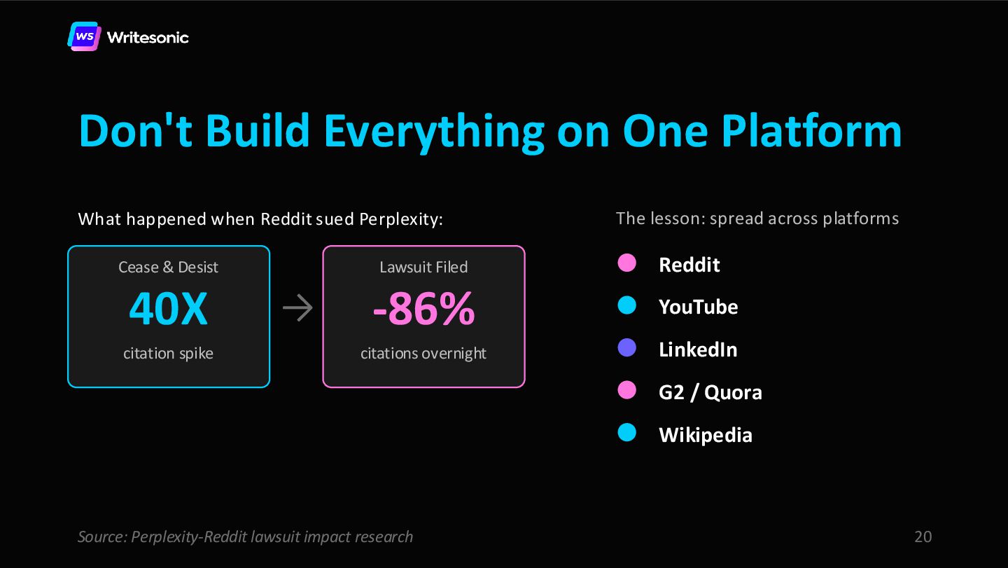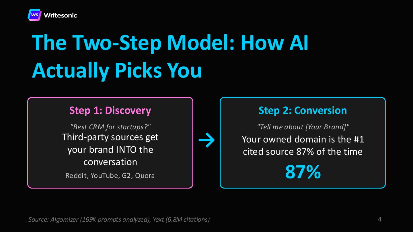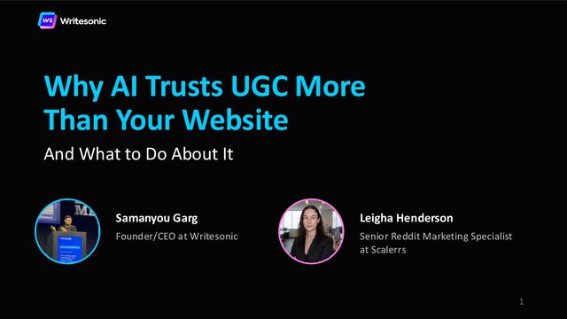 In this webinar, Samanyou Garg (Founder and CEO, Writesonic) and Leigha Henderson (Reddit Marketer, Scalers) share the exact playbook for leveraging Reddit to get cited by AI search platforms.