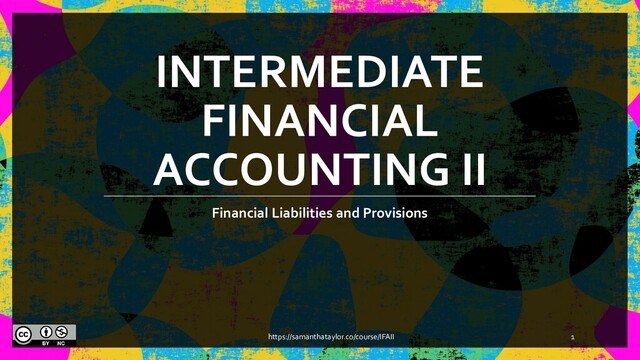 loss (FVTPL) – if (a) will be sold in the short term (< 1 year), or (b) designated as FVTPL by management (ex. For hedging purposes). Valued at FV with changes in FV going through the income statement. Expense transaction costs. Exception: in the case of (b), changes in value caused by changes in credit risk flow through OCI • “Other” financial liabilities – Are not FVTPL. Initial valuation at FV, subsequently at amortized cost. Capitalize transaction costs. All liabilities should be discounted where TVM is material https://samanthataylor.co/course/IFAII 5