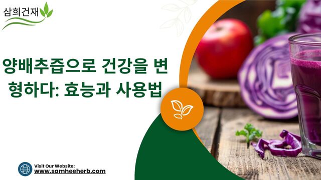 양배추즙은 소화 개선, 간 기능 지원, 면역력 강화, 체중 관리, 피부 건강 증진에 도움을 주는 강력한 음료입니다. 이 가이드는 양배추즙의 주요 건강 이점과 이를 식단에 쉽게 포함시키는 방법을 소개합니다. 건강을 향상시키고 더 나은 웰빙을 경험해 보세요. https://www.samheeherb.com/product/cabbage-juice/66
