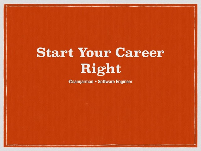 Starting off your software development career, especially if it's your first career, can be tough. There is so much to learn, more than just syntax of code! This talk, aimed at junior, intermediate or even senior developers(!) covers some of the key tricks to a successful career, such as finding a mentor, working in a team, finding direction, supercharging your learning, getting your performance reviewed and much more.