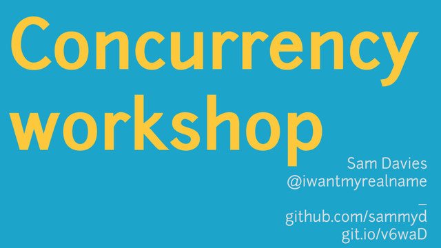 Concurrency workshop Sam Davies @iwantmyrealname _ github.com/sammyd git.io/v6waD