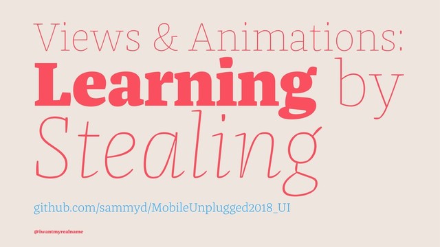 Making your apps look and feel fantastic is a big part of creating top-notch user experience. Since we know that great artists steal, one of the best ways to improve your skills is to recreate things you love in other apps. In this talk, we'll do exactly that. We'll take two or three great pieces of UI and work out how to recreate them. This will give us a great opportunity to spelunk across multiple frameworks, such as Core Animation, and to discover techniques we can use to recreate some great UI flourishes. By the end of this talk you'll have learnt at least two things, one of which will be of some use to you.