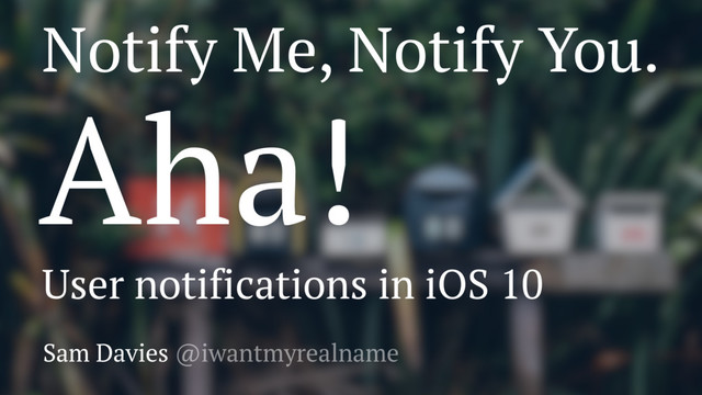 User notifications are incredibly important part of iOS apps - allowing you to get your user to interact with your app when *you* want. They enrich the user experience, and provide real value to your users. So why are they such a pain to work with? Apple has finally heard your cries of despair, and in iOS 10 introduces the new UserNotifications framework. This acts as a central place to handle all user notifications, whether they be local or push notifications.