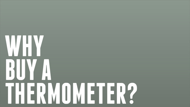 An overview into building a logging thermometer with a thermistor, an arduino, some python, ruby, d3.js and ShinobiCharts, all to answer the question - is our office too cold?