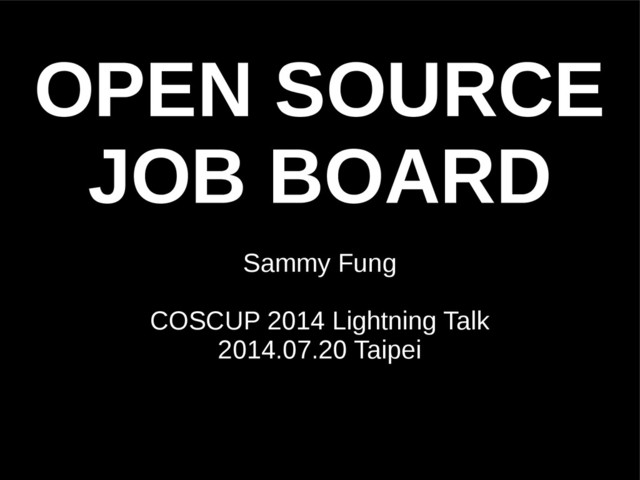 OPEN SOURCE JOB BOARD Sammy Fung COSCUP 2014 Lightning Talk