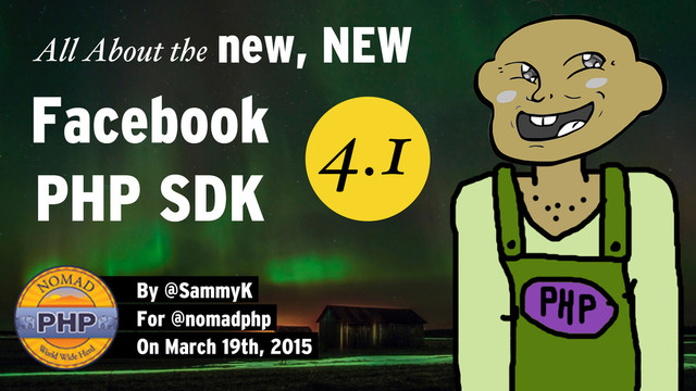 When developing on Facebook, things change all the time. And things are about to change once again with the release of the Facebook PHP SDK v4.1. It's got tons of new powerful features that have never existed in a Facebook PHP SDK before. This lightning talk is focused on giving a crash-course on the new Facebook PHP SDK v4.1 and it's features. By the end you should have the confidence to start using the new SDK within your own app.