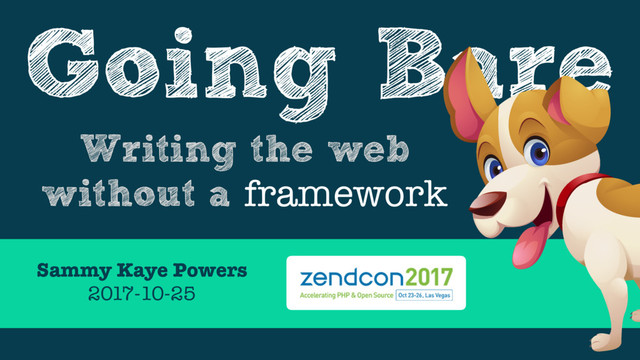 If you've only ever experienced web development through a web framework, you're missing out. Have you ever been tempted to rewrite a codebase in your favorite framework? That's a smell that you need to come to this session. Being comfortable developing without a framework is a crucial skill to have for refactoring legacy applications. In this session you'll see how to harness the power of going "frameworkless" so you'll feel empowered to make better decisions in your next web project. Be set free from your web-framework ball and chain.