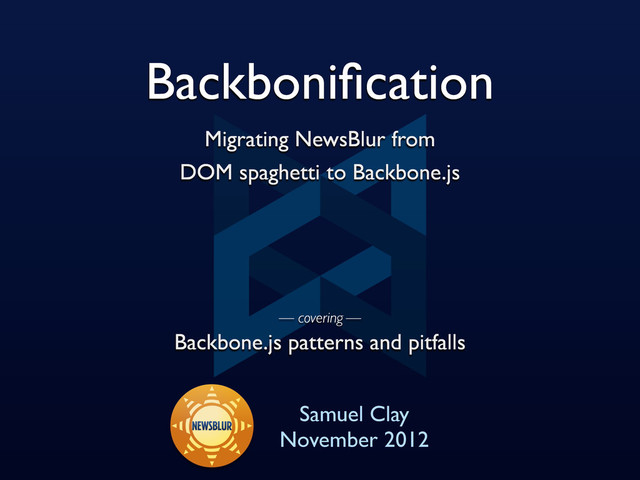 Backbonification - Migrating NewsBlur From DOM Spaghetti to Backbone.js