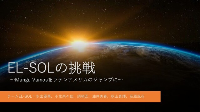 EL-SOLの挑戦 〜Manga Vamosをラテンアメリカのジャンプに〜 チームEL-SOL:⽔出優華、⼩北奈々佳、須崎匠、油井美春、秋⼭真輝、荻原⾵花