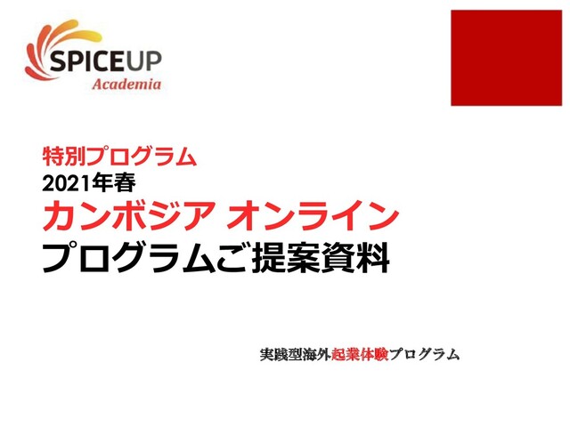 特別プログラム 2021年春 カンボジア オンライン プログラムご提案資料 実践型海外起業体験プログラム