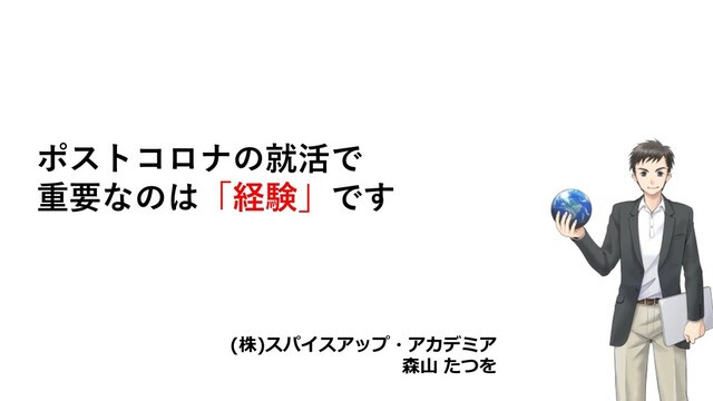 ポストコロナの就活で 重要なのは「経験」です (株)スパイスアップ・アカデミア 森⼭ たつを