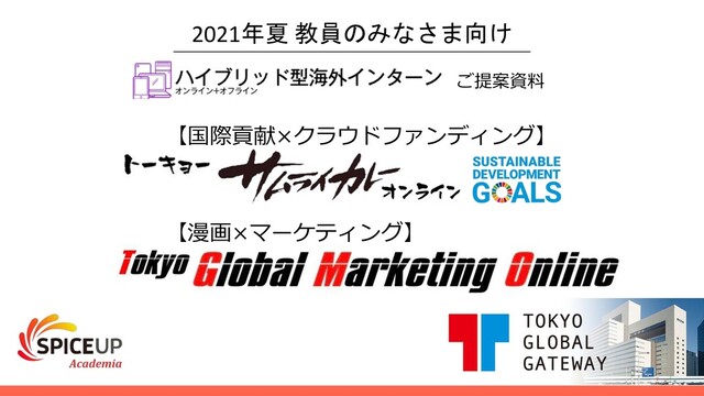 東京グローバルゲートウェイで国際コミュニケーションを学び、オンラインで実戦経験をする、オフライン+オンライン ハイブリッドプログラムのご紹介資料です。