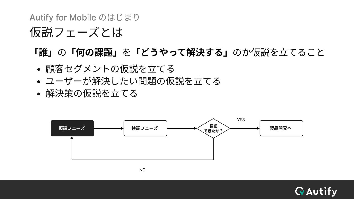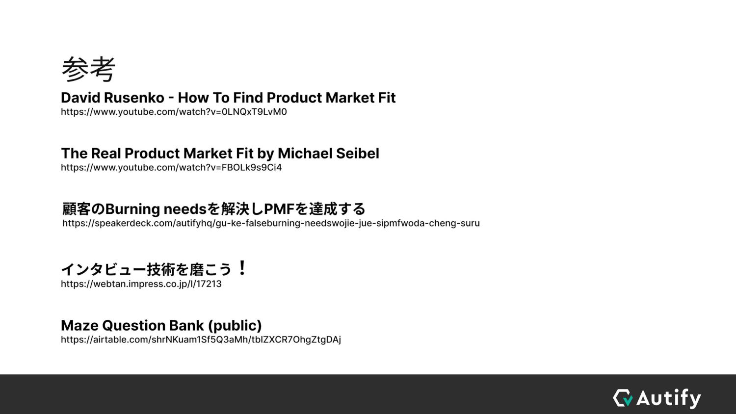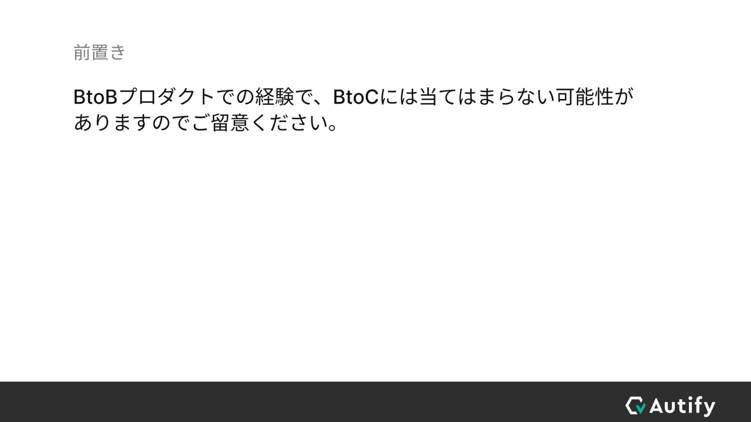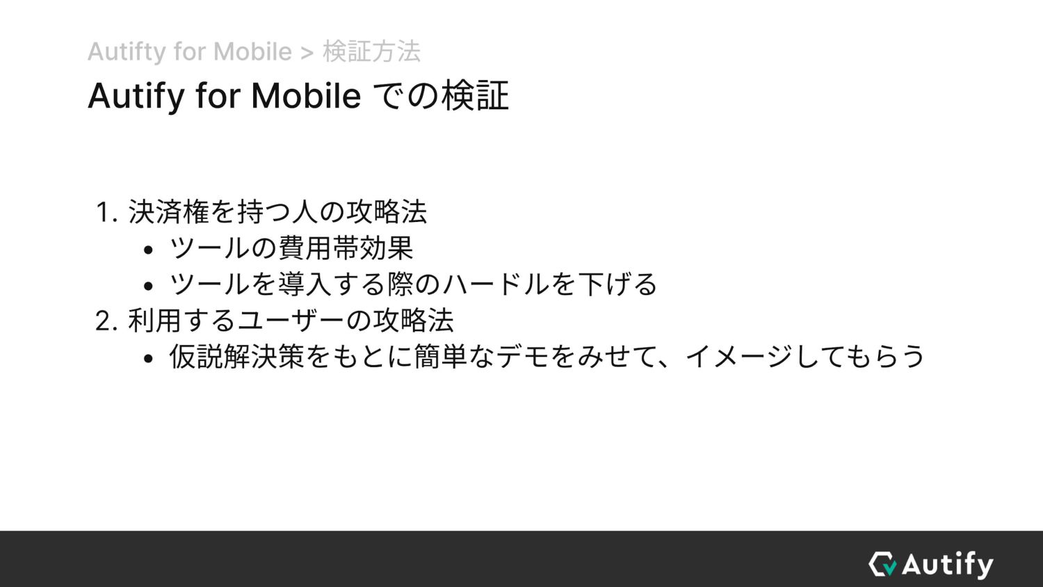 pmconf2020にてセッション満足度1位を獲得した、Autify CEO近澤による「顧客のBurning needsを解決し、PMFを達成する」セッション。果たしてこのメソッドは本当に再現性があるものなのか。Autifyにとって2つ目のプロダクトとなる新プロダクト「Autify for Mobile」の立ち上げとPMを担った共同創業者の山下が、実践してみた結果とその軌跡を振り返ります。