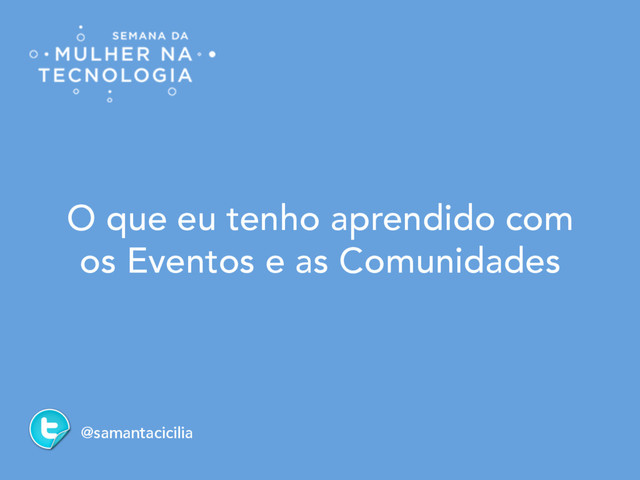 Como as diversas Comunidades de Tecnologia influenciam nossa vida enquanto profissionais e pessoas. Vou contar um pouco sobre as comunidades que participo atualmente (principalmente agilidade e testes), falar da experiência em administrar um Fórum nacional de Testes (http://agiletesters.com.br/) e organização/participação em eventos.