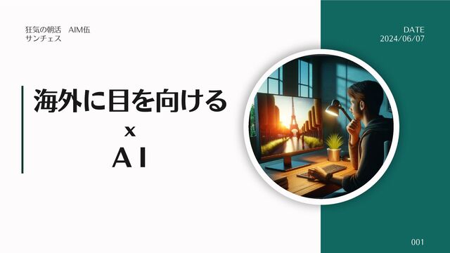 海外に目を向ける A I x 狂気の朝活 AIM伍 サンチェス DATE 2024/06/07 001
