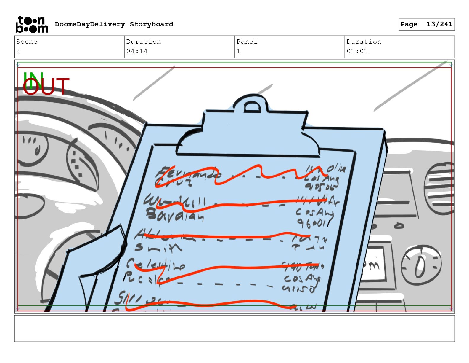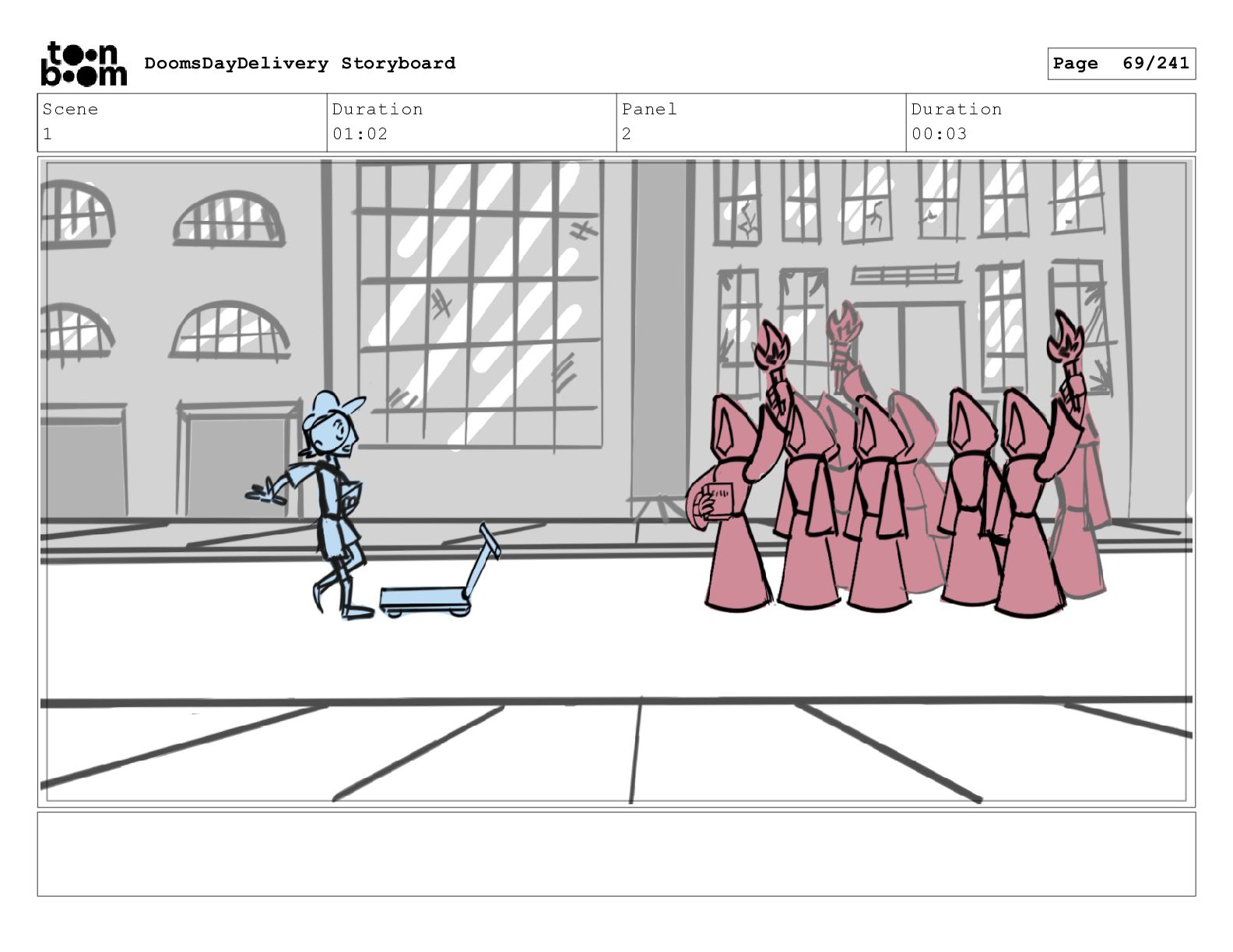 Scene 2 Duration 04:14 Panel 1 Duration 01:01 DoomsDayDelivery Storyboard