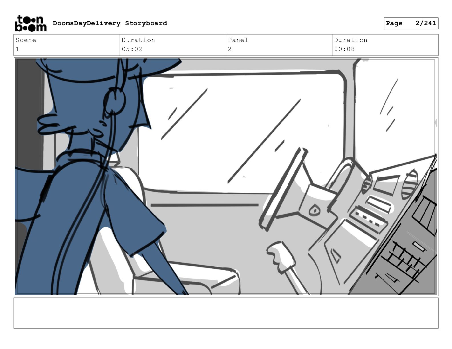 Scene 1 Duration 05:02 Panel 2 Duration 00:08 DoomsDayDelivery Storyboard