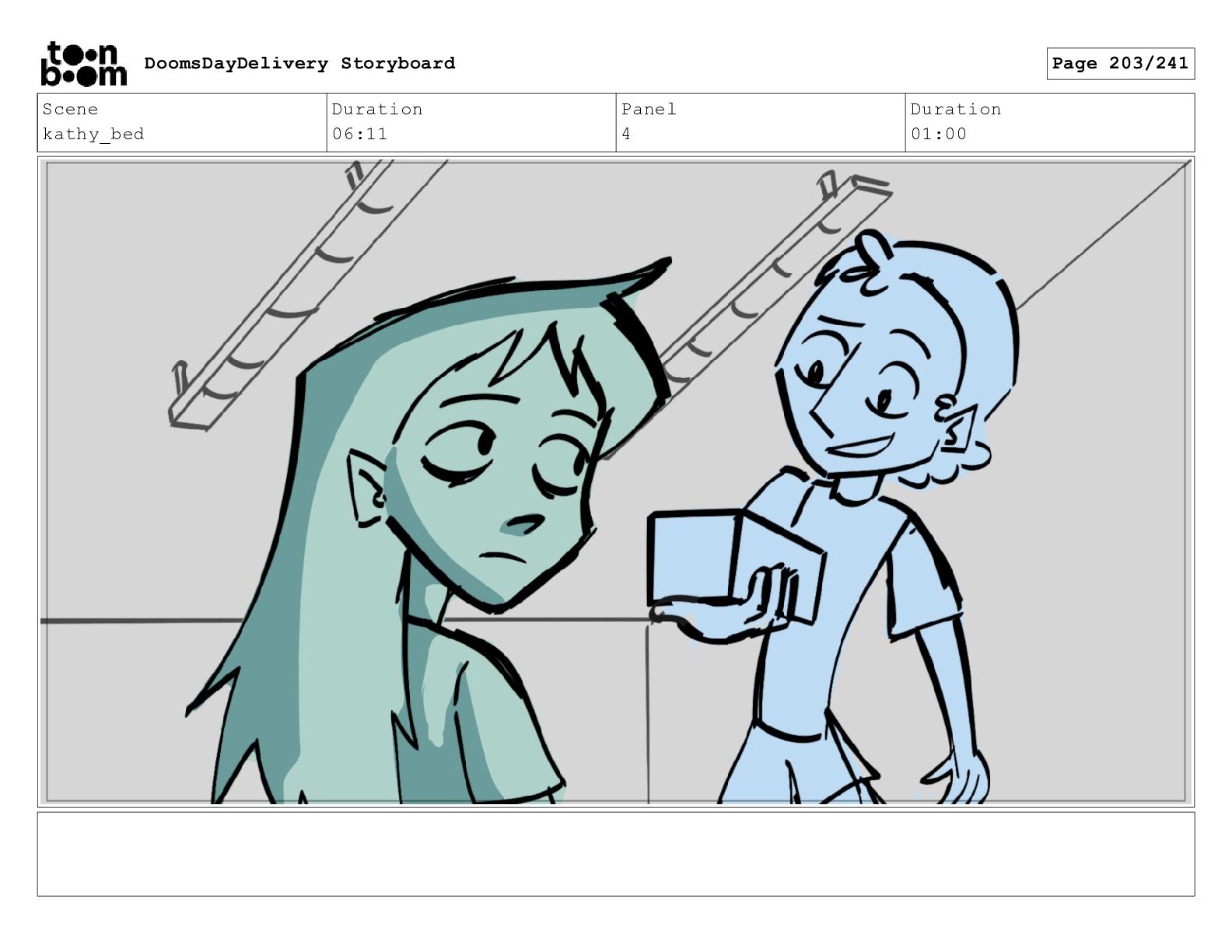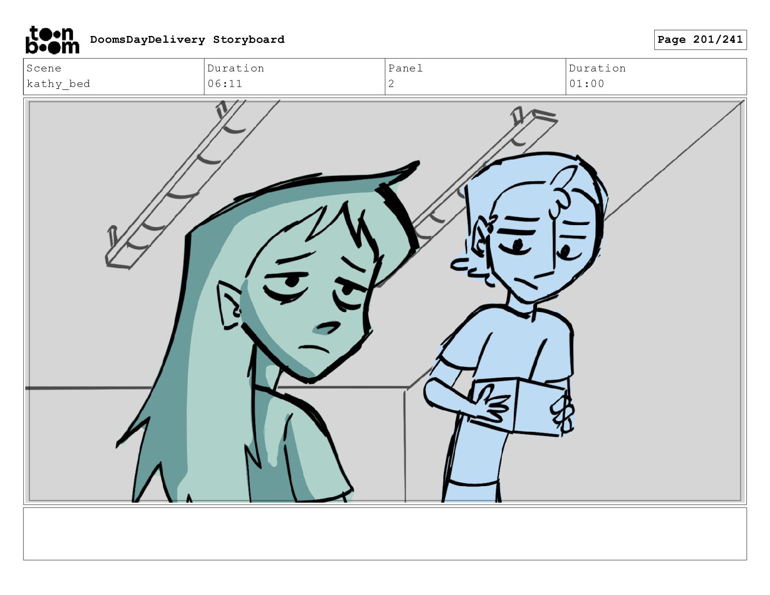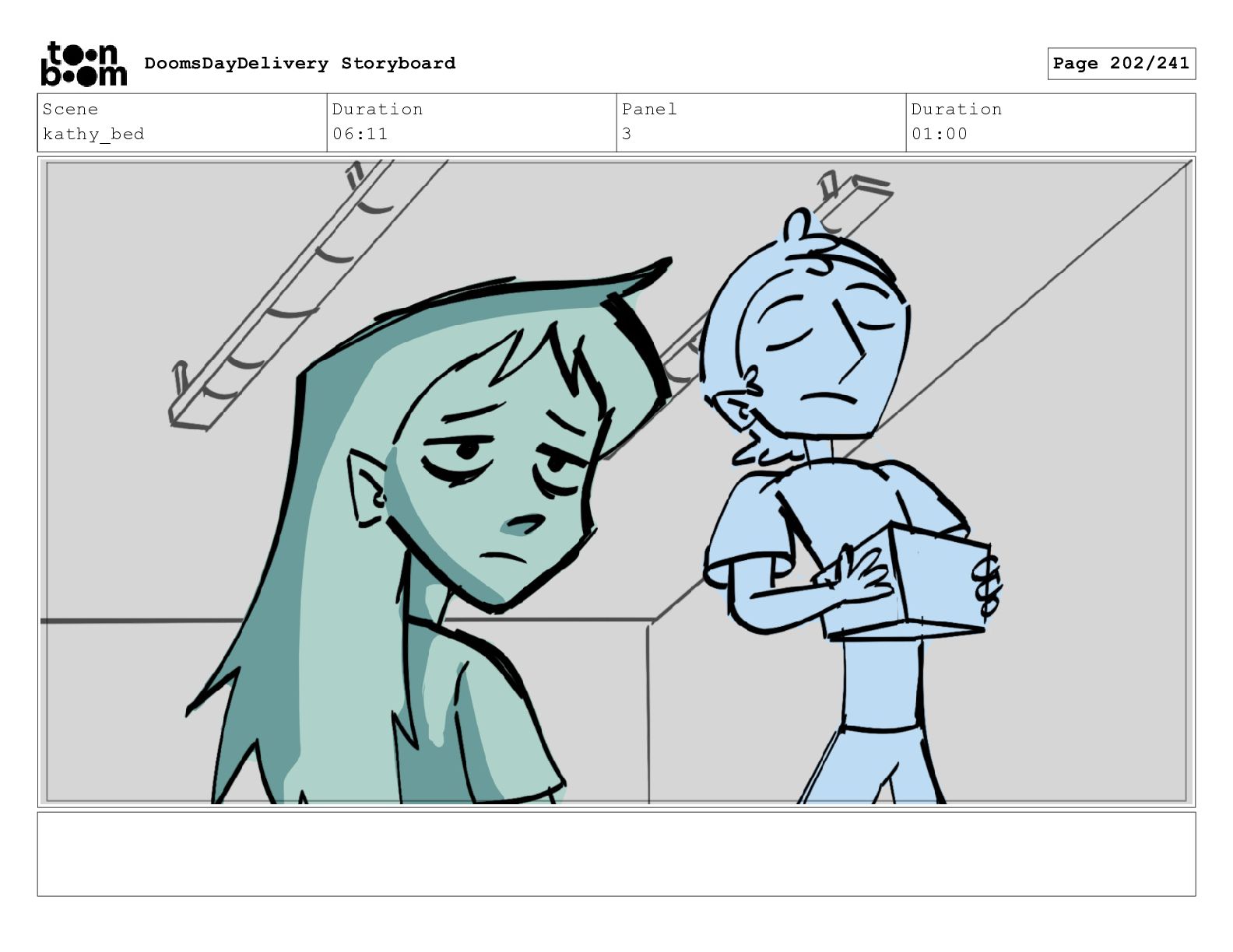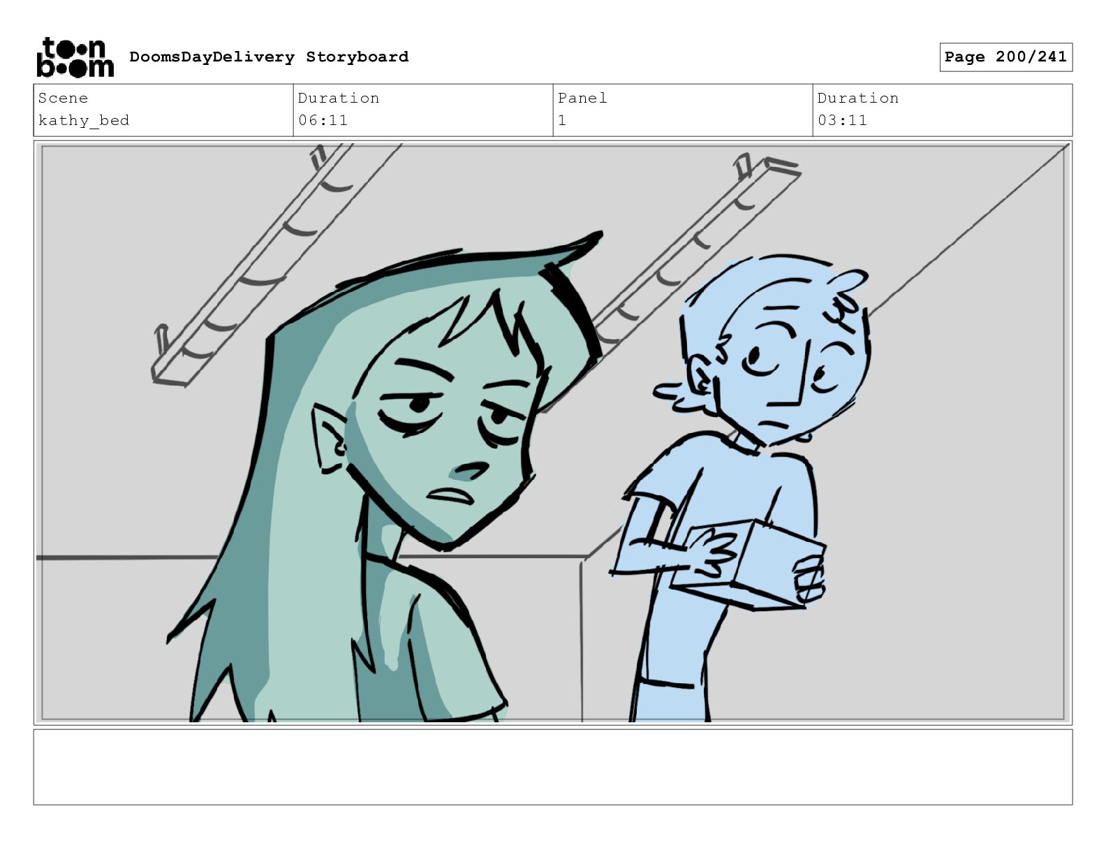 Scene kathy_bed Duration 06:11 Panel 1 Duration 03:11 DoomsDayDelivery Storyboard