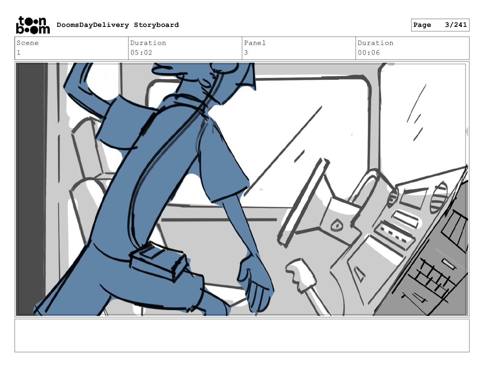 Scene 1 Duration 05:02 Panel 3 Duration 00:06 DoomsDayDelivery Storyboard