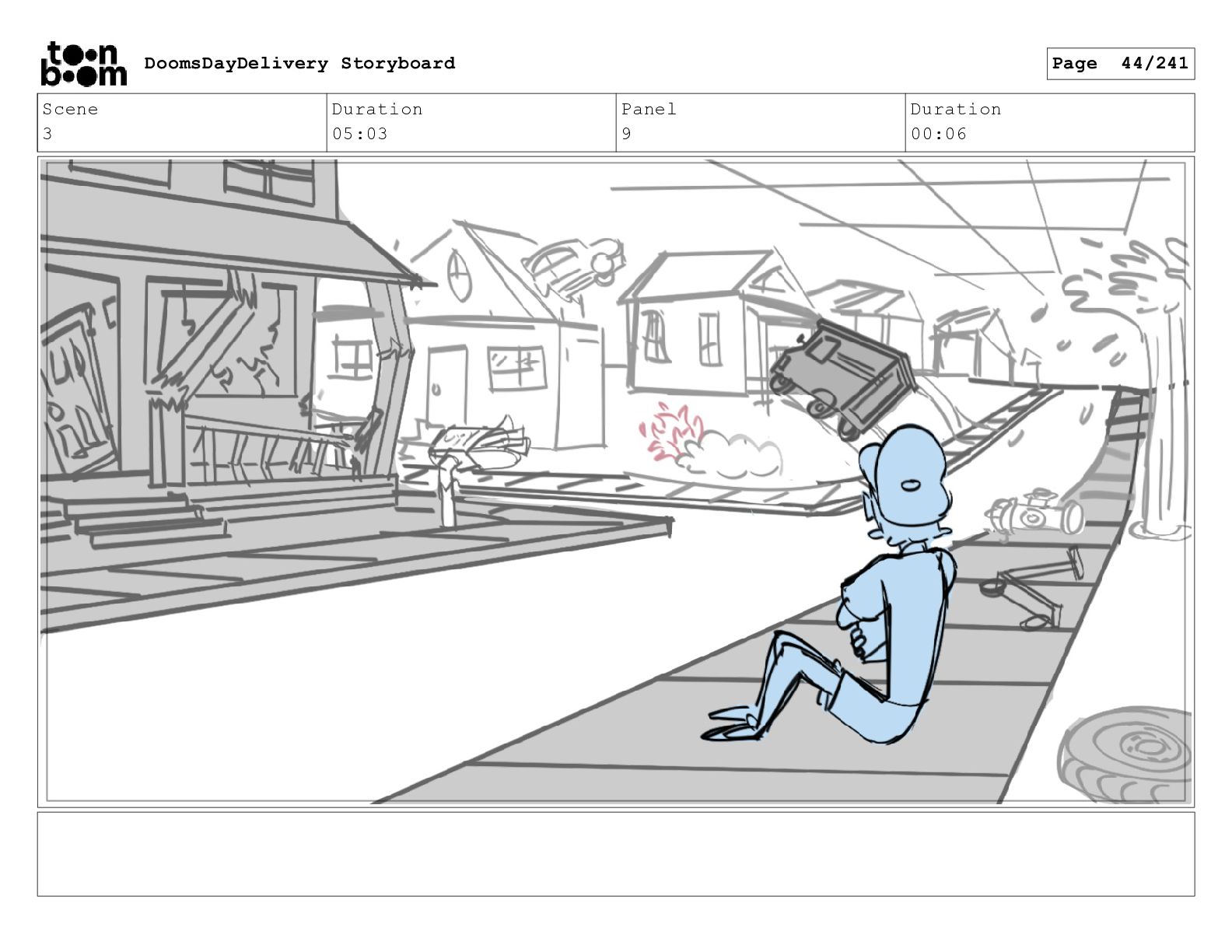 Scene 1 Duration 05:02 Panel 11 Duration 00:09 DoomsDayDelivery Storyboard