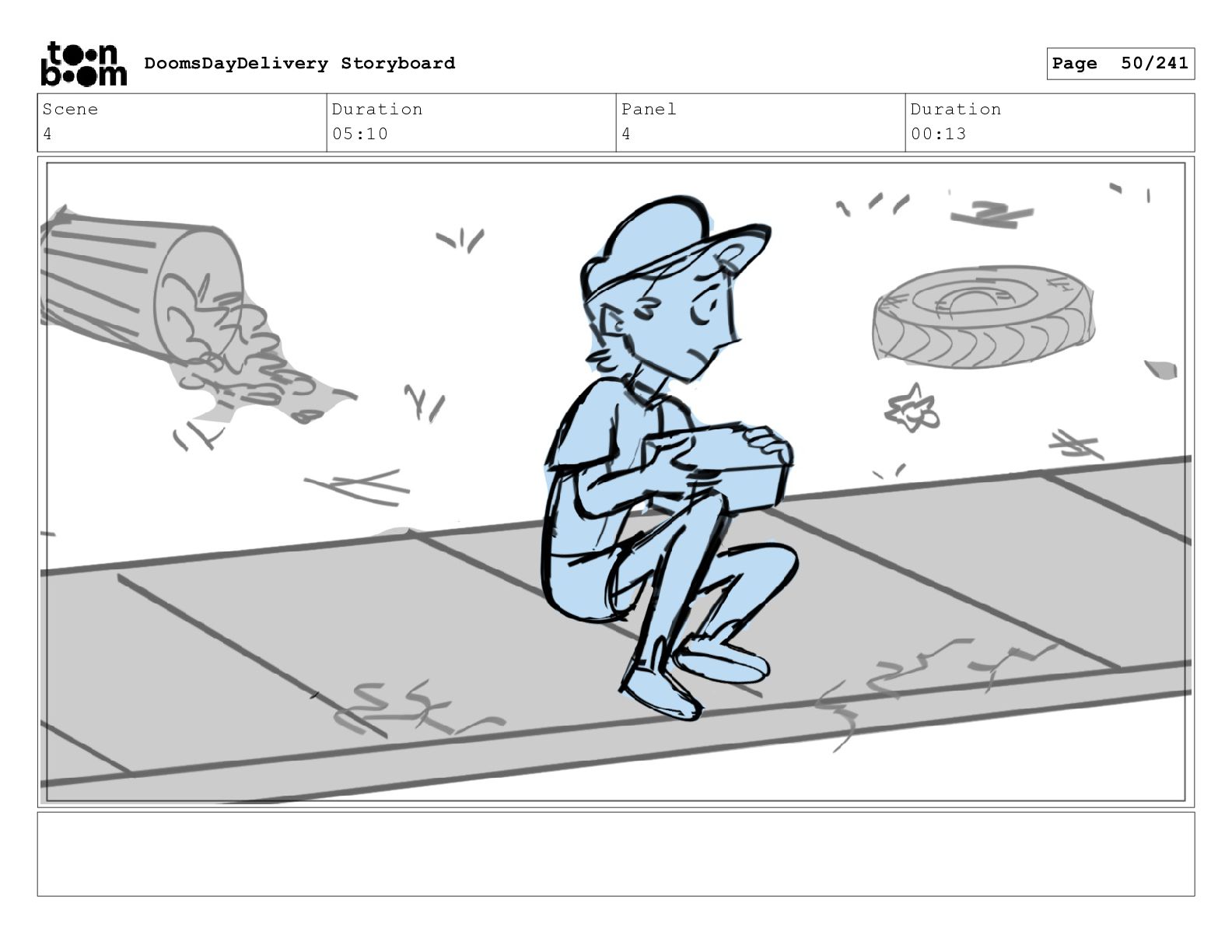 Scene 1 Duration 05:02 Panel 4 Duration 00:13 DoomsDayDelivery Storyboard