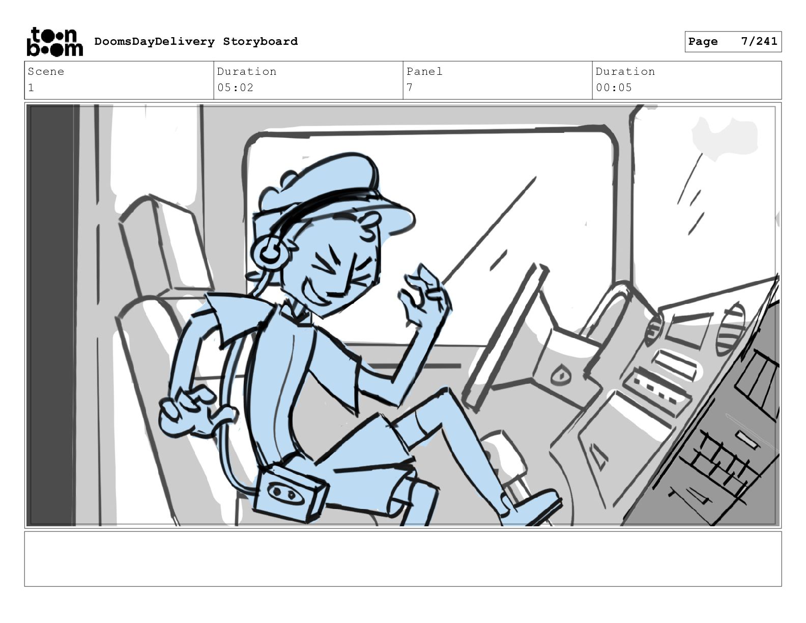 Scene 1 Duration 05:02 Panel 7 Duration 00:05 DoomsDayDelivery Storyboard