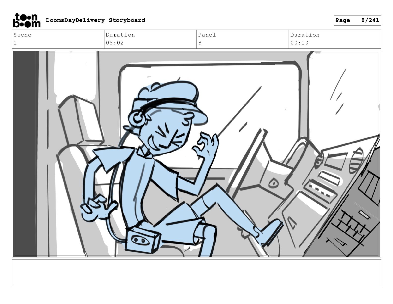 Scene 1 Duration 05:02 Panel 8 Duration 00:10 DoomsDayDelivery Storyboard