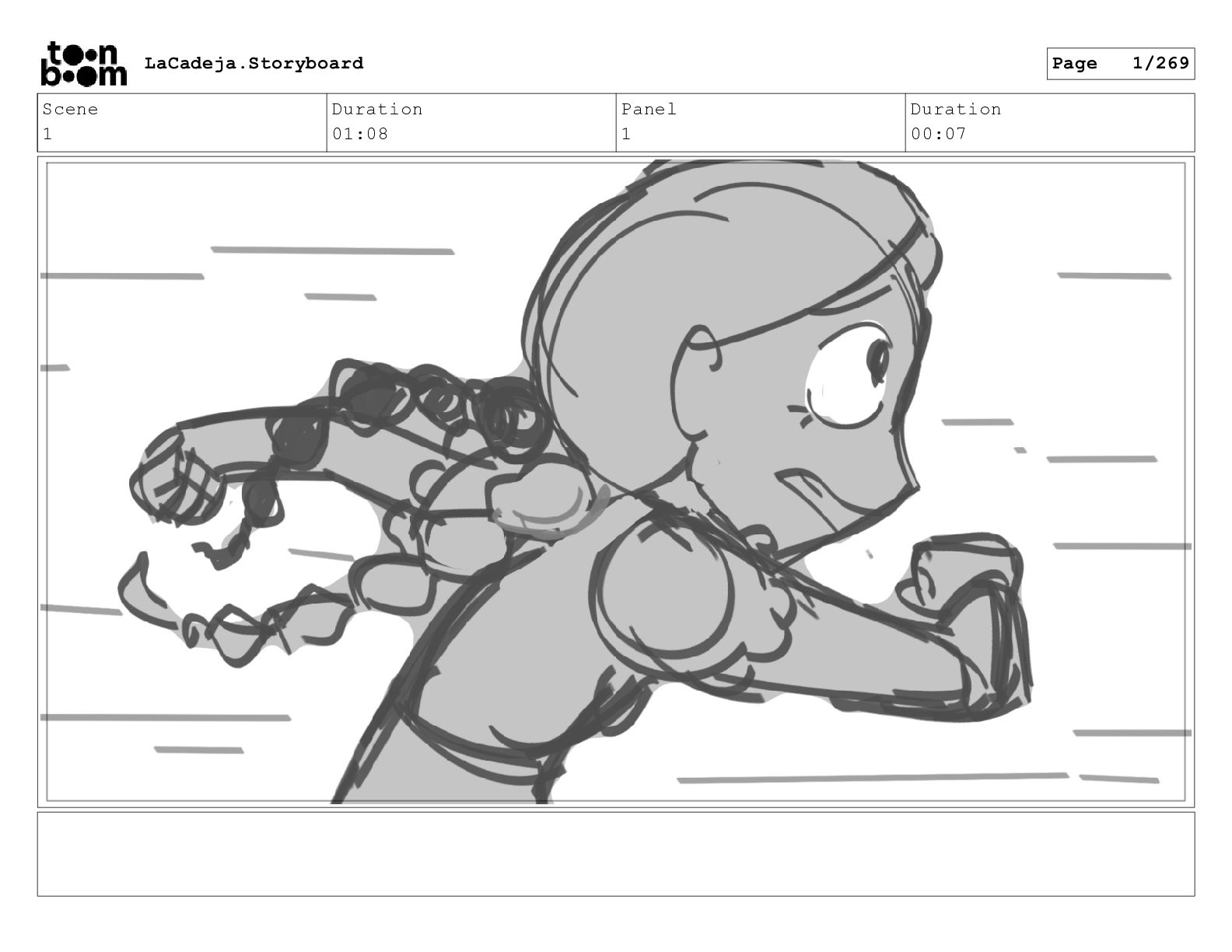 Scene 1 Duration 01:08 Panel 1 Duration 00:07 LaCadeja.Storyboard Page