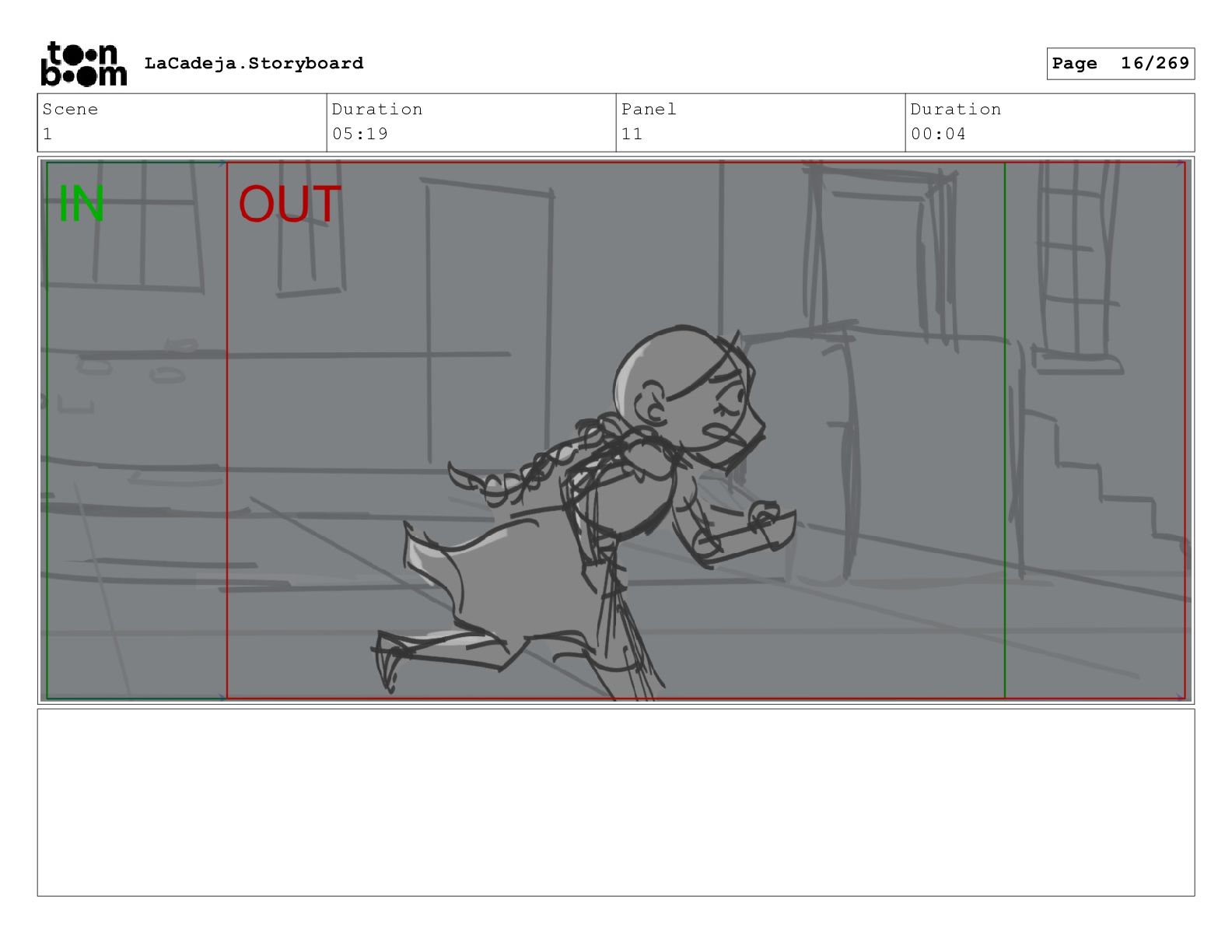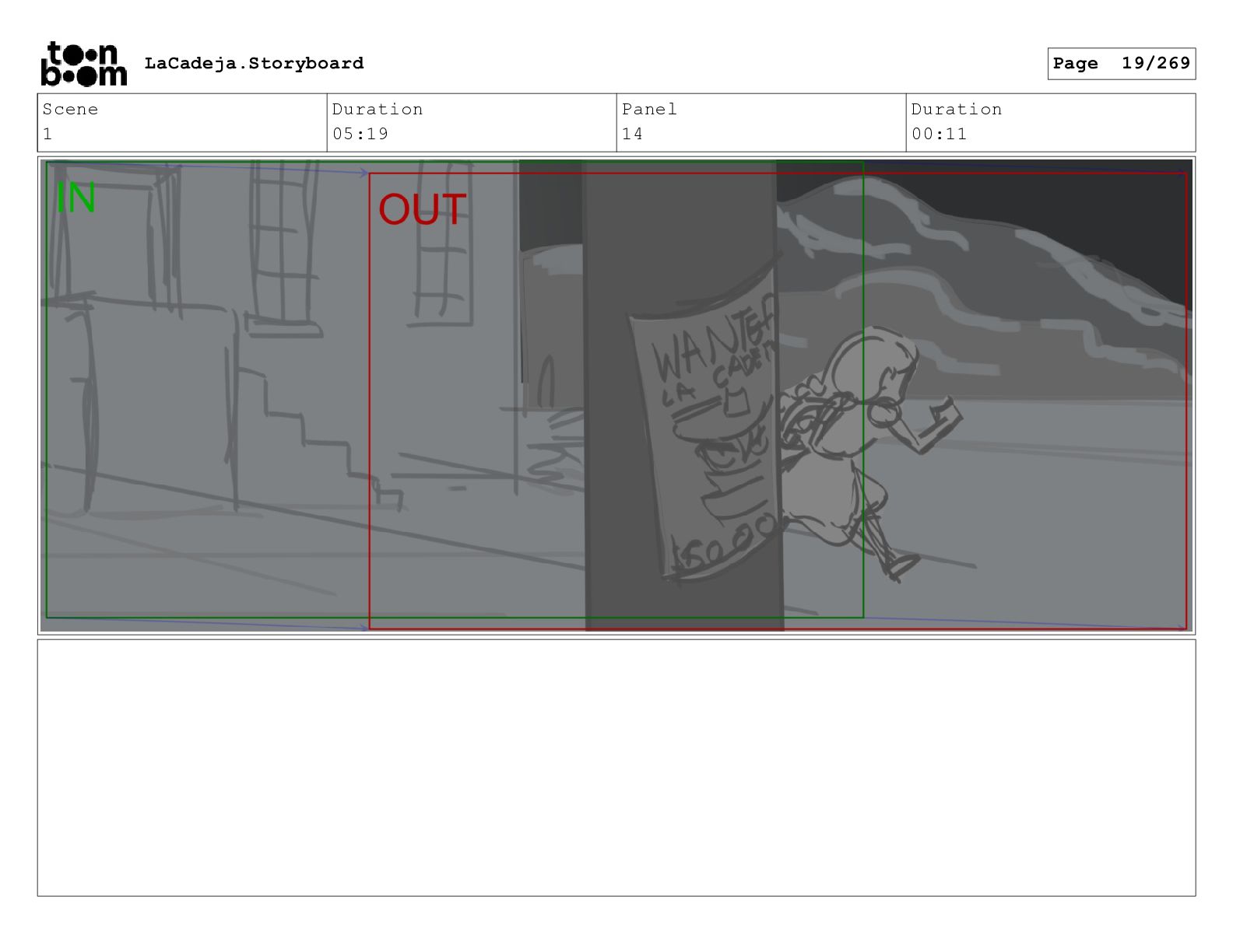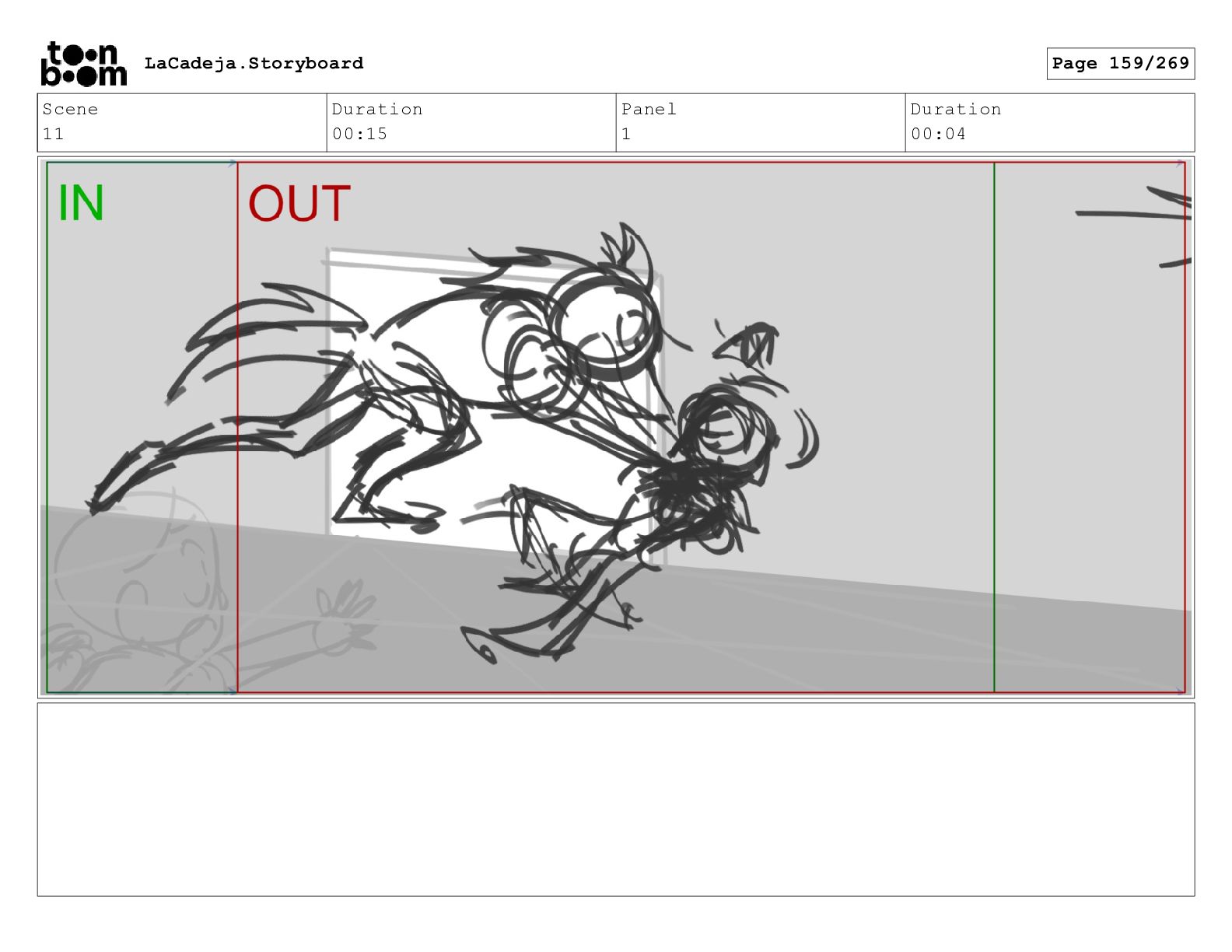 Scene 1 Duration 05:19 Panel 4 Duration 00:11 LaCadeja.Storyboard Page