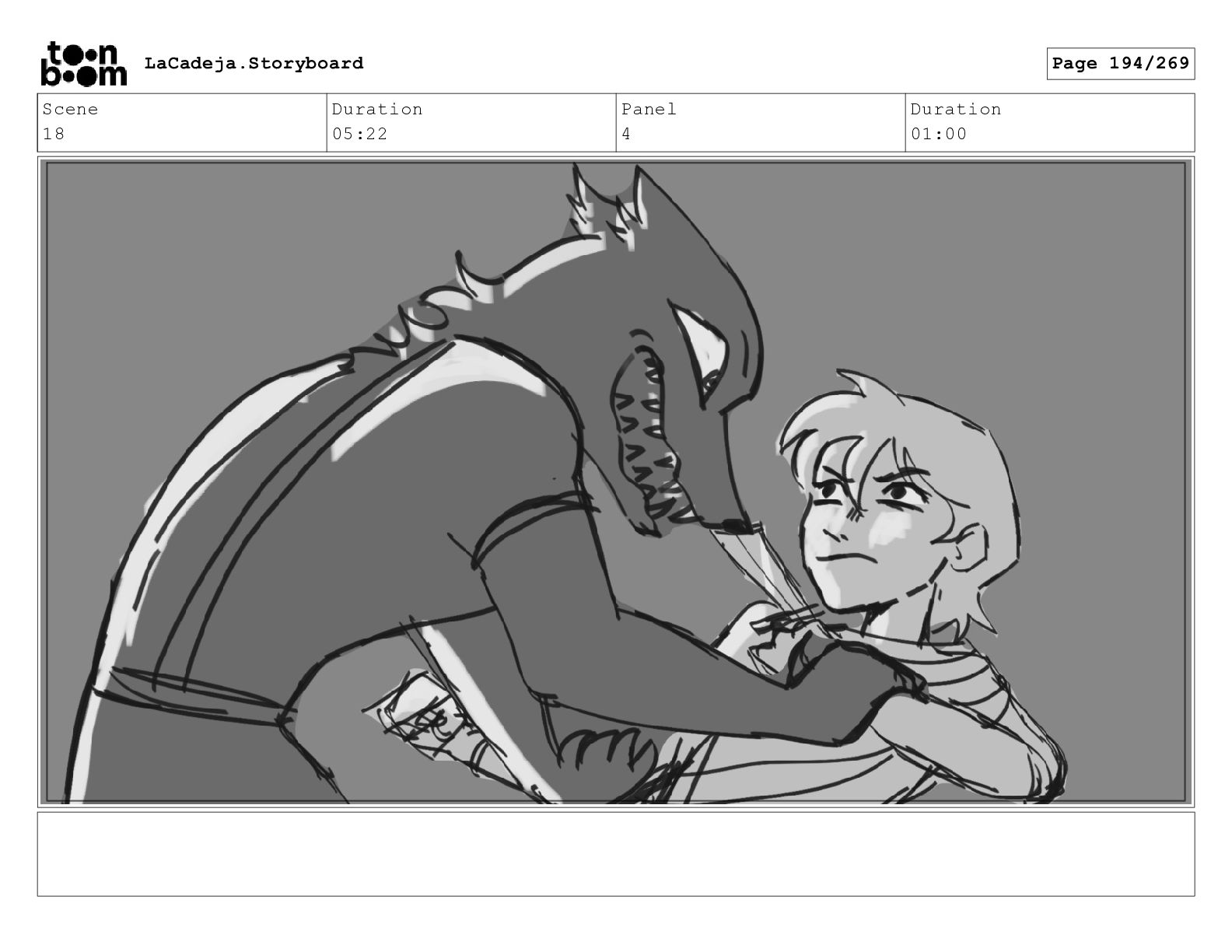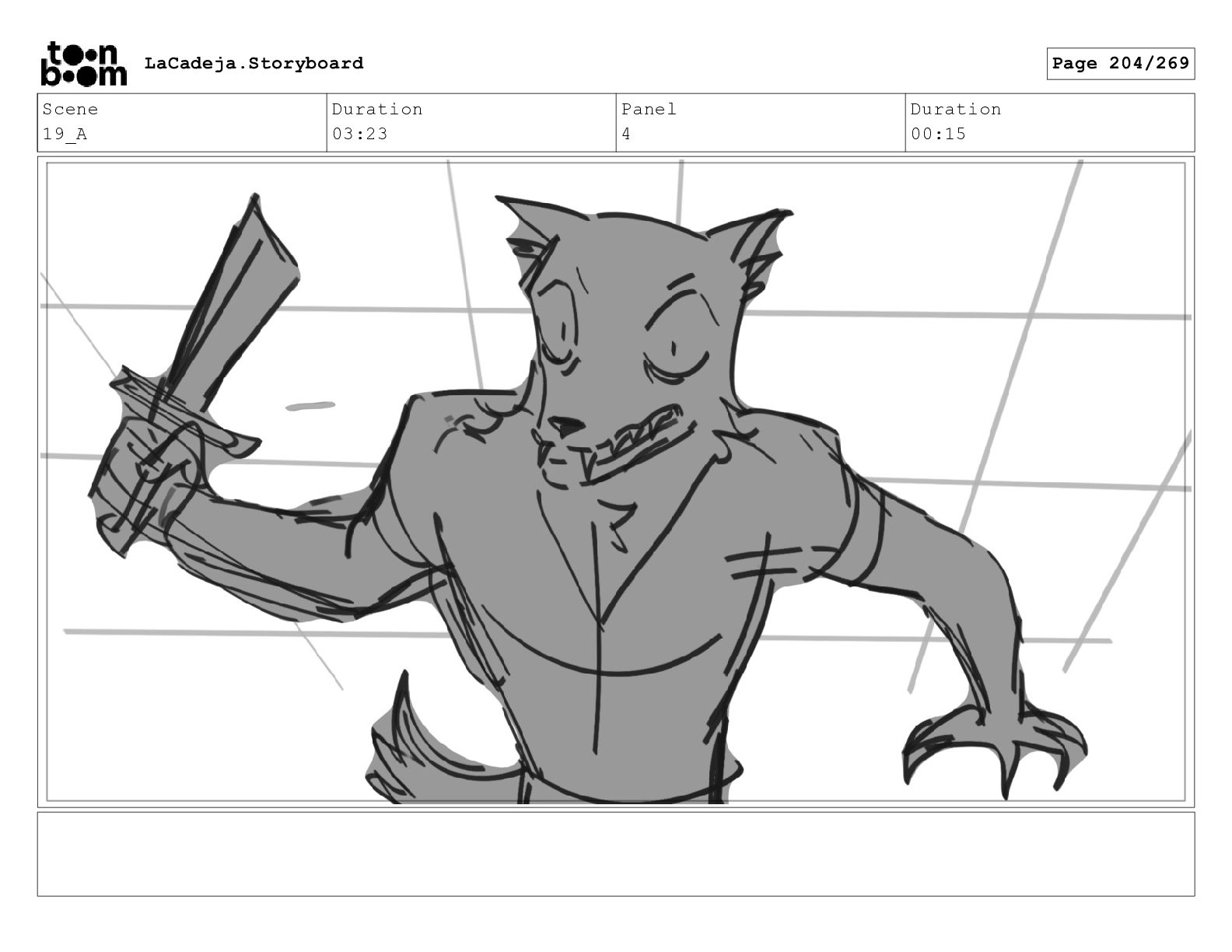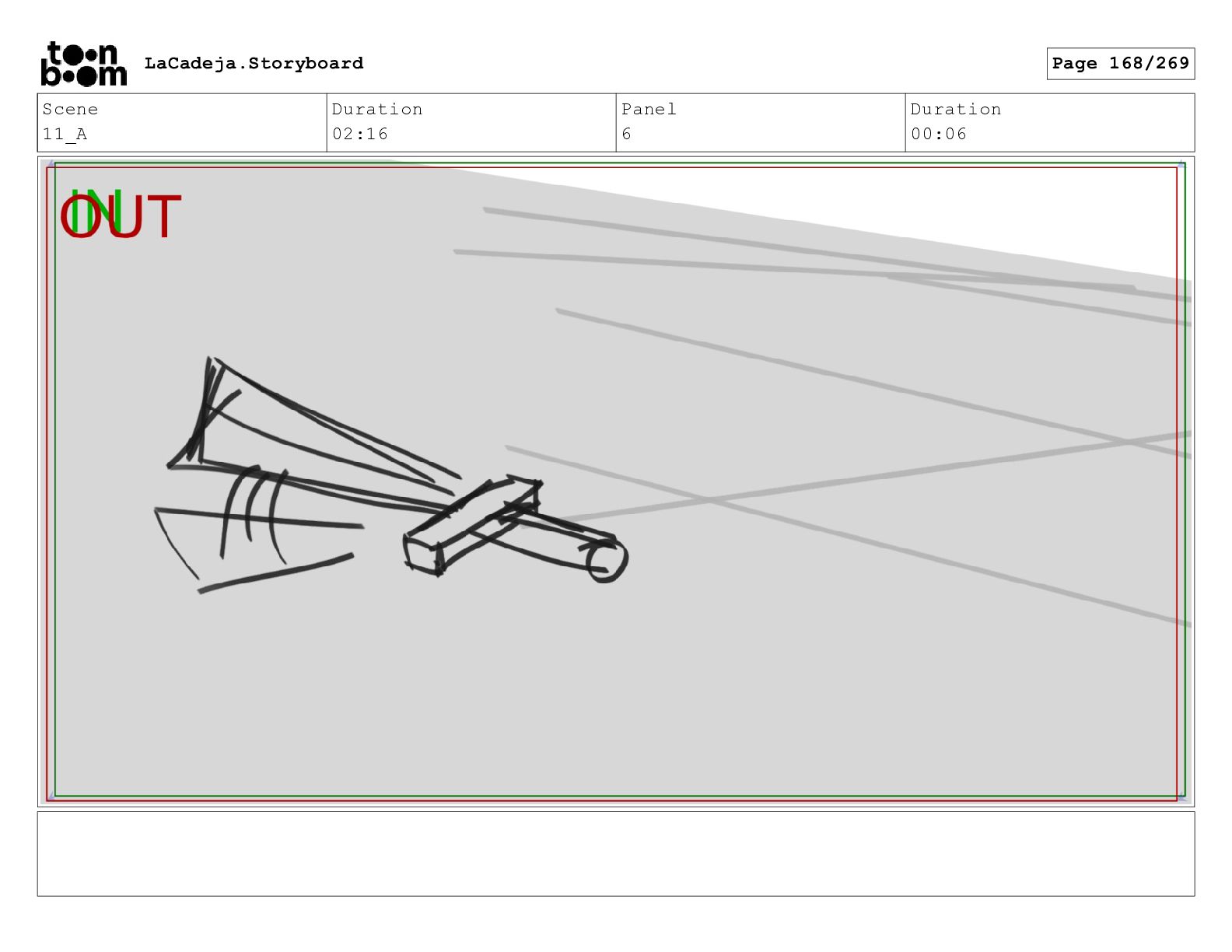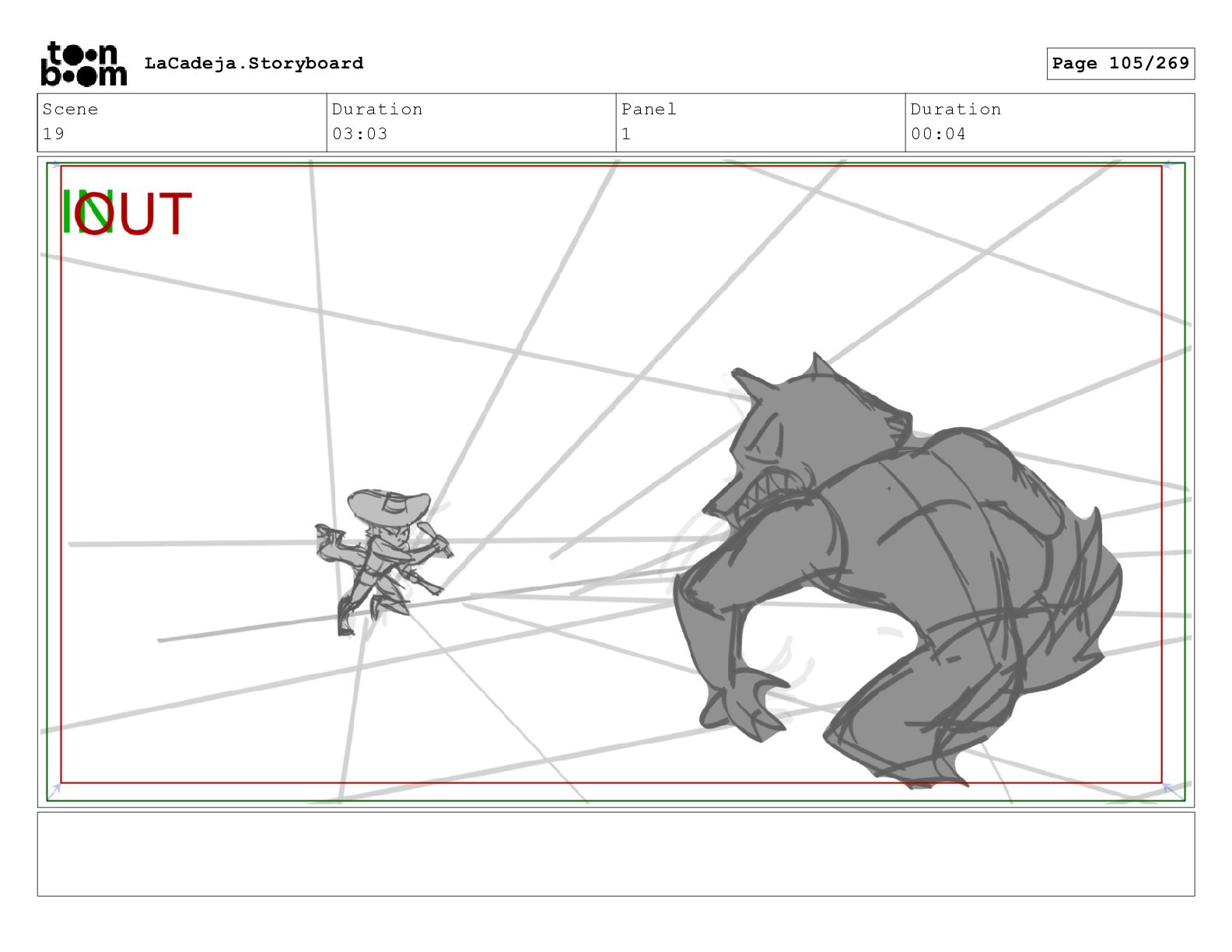 Scene 1 Duration 05:19 Panel 4 Duration 00:11 LaCadeja.Storyboard Page