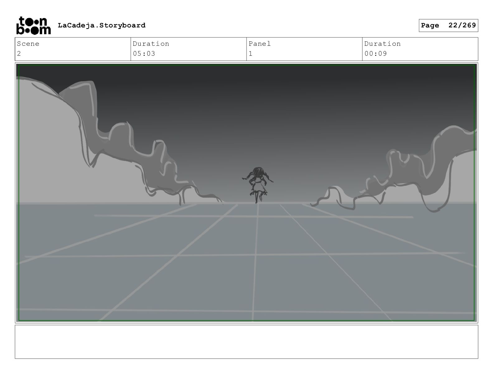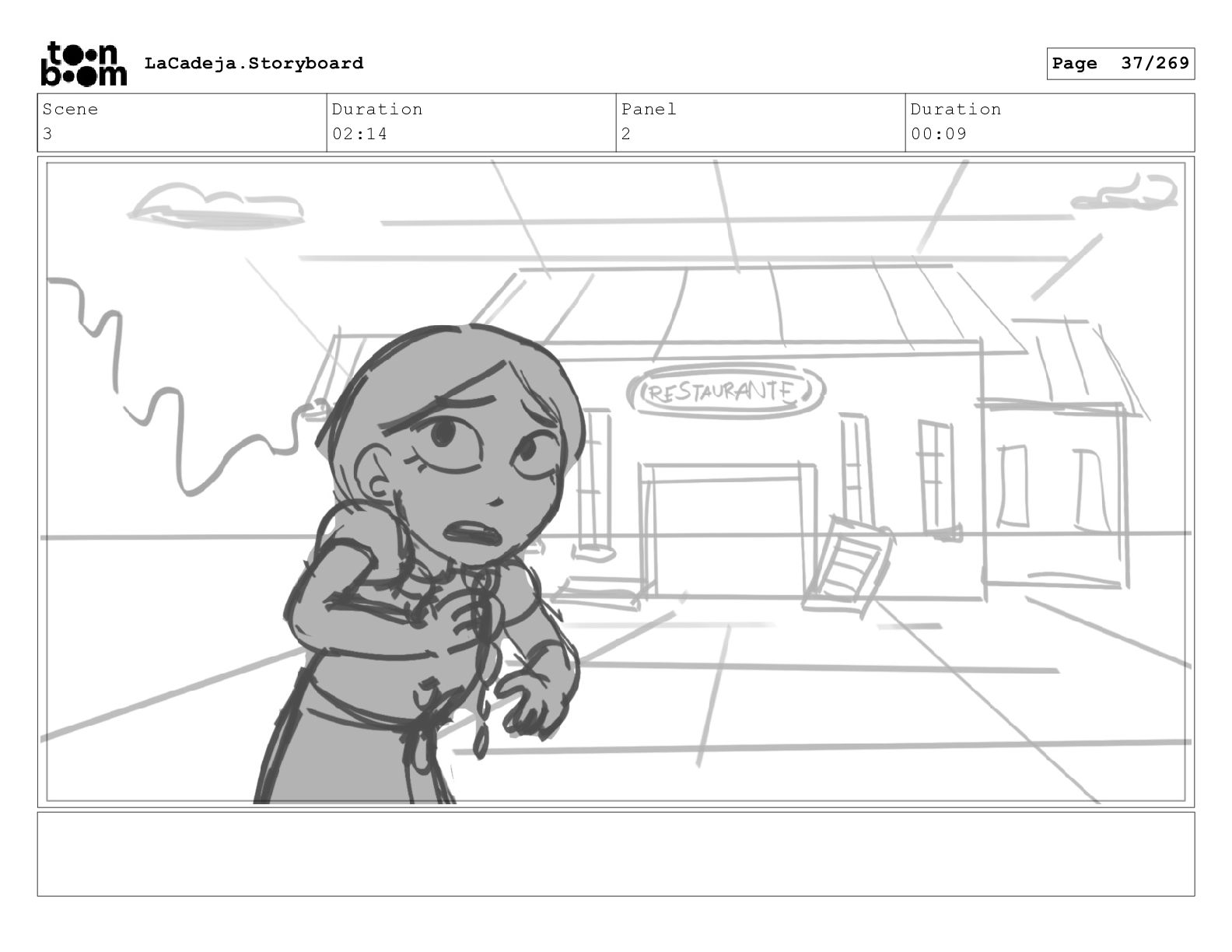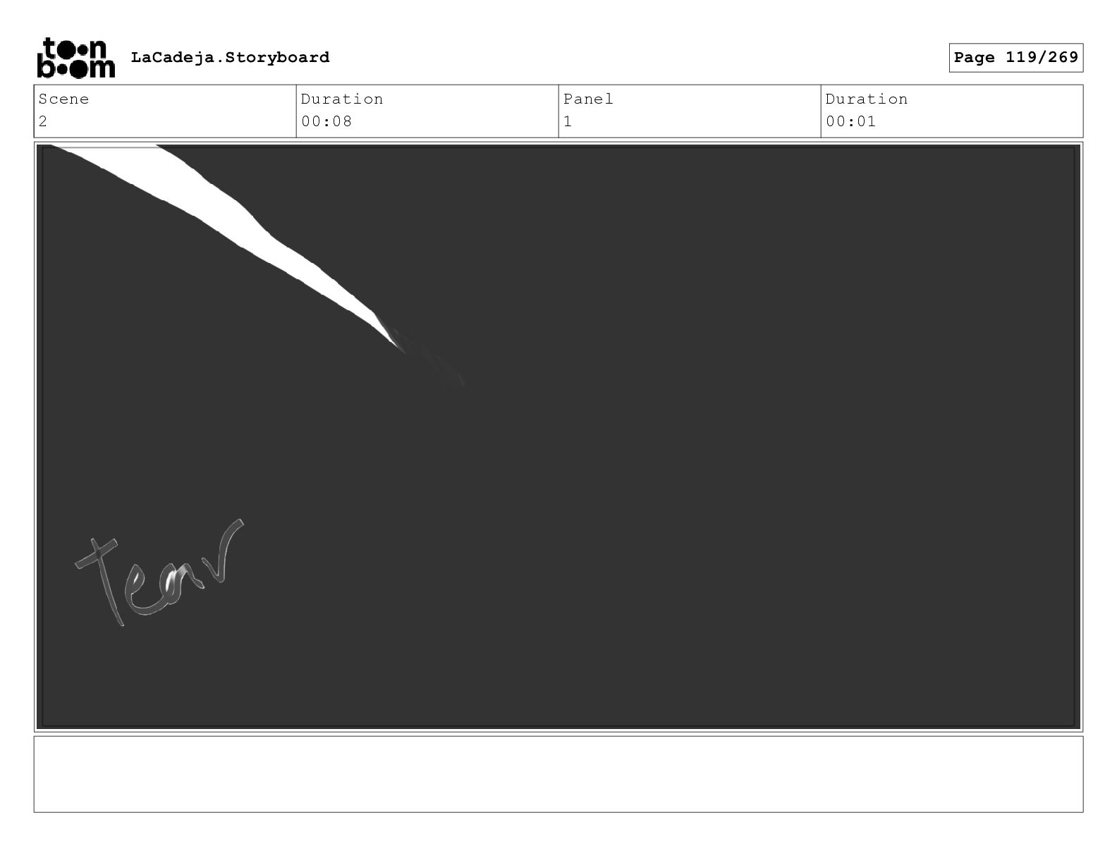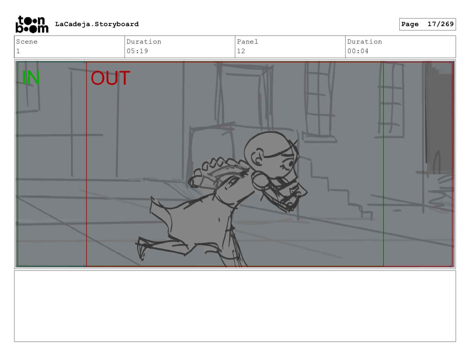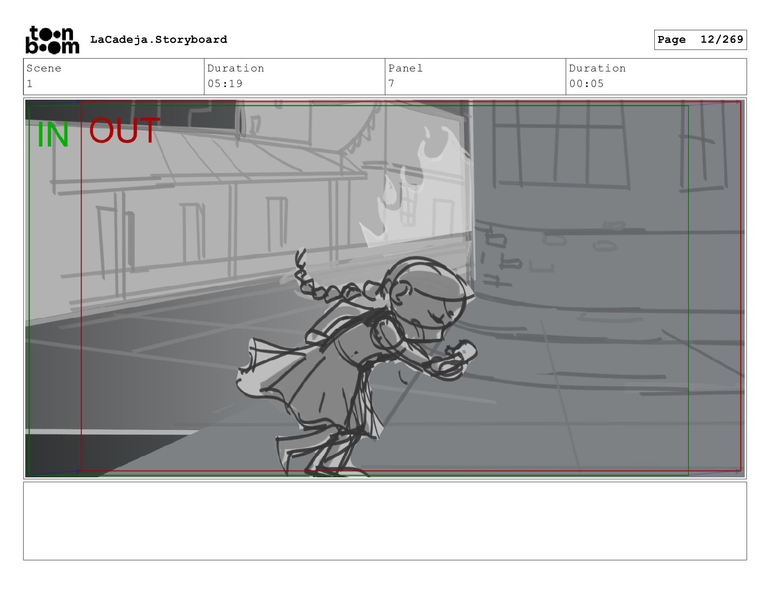 Scene 1 Duration 05:19 Panel 2 Duration 00:12 LaCadeja.Storyboard Page